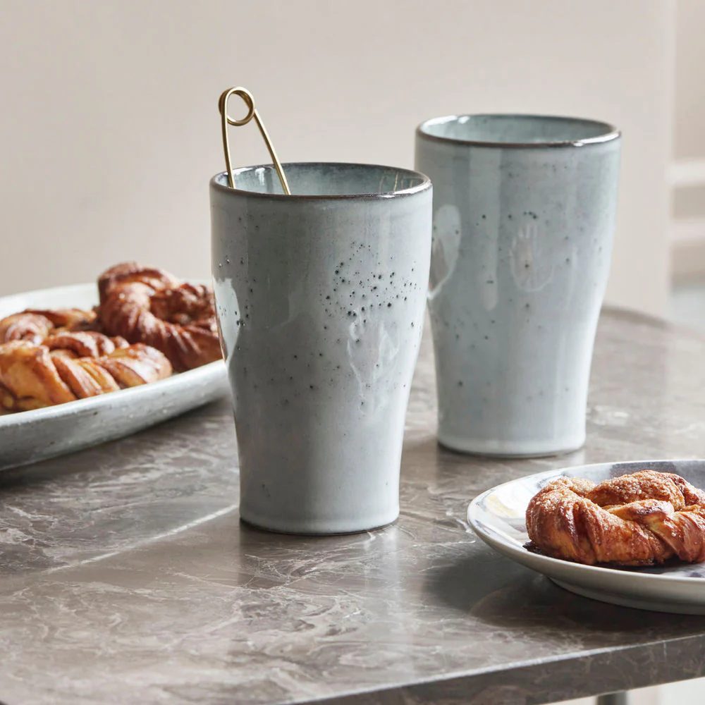 Deze set van 2 lichtgrijze thermosmokken van House Doctor is een sobere maar stijlvolle keuze waarmee je langer van je favoriete warme drankje kunt genieten. De hoge mokken zijn gemaakt van aardewerk en luisteren naar de naam Liss. Ze zijn afgewerkt met een grijs glazuur met kleine, opzettelijke imperfecties om een rustieke, informele look te creƫren. Dankzij de taps toelopende vorm liggen de mokken prettig in de hand, terwijl de dubbele wand je koffie of thee langer warm houdt. Gebruik de mokken overdag op kantoor, voor koffie in de middagpauze of voor thee in de avond. Of op elk ander moment. Ze zijn een praktische en stijlvolle keuze voor dagelijks gebruik.