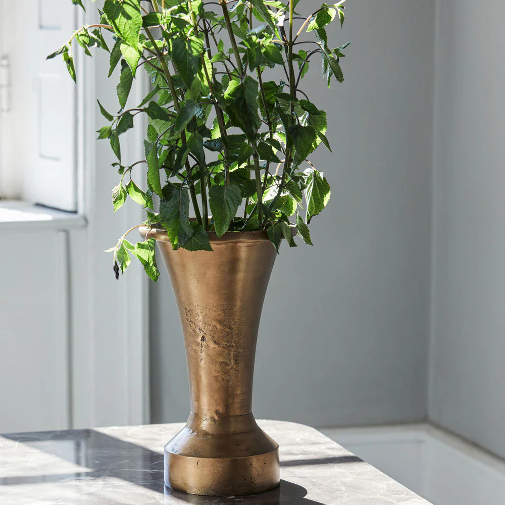 Geef je huis een vleugje vintage-geïnspireerde elegantie met deze bloemenvaas van House Doctor. Het aluminium ontwerp met gouden afwerking en uitlopende rand voert je terug naar de klassieke Parijse bloemist. Breng deze bijzondere look naar je woonkamer door de vaas als pronkstuk op een console of als middelpunt op je eettafel te plaatsen. Vul de vaas met bloesemtakjes of snijbloemen – ze zullen er op hun best uitzien. De Florist vaas voegt een klassiek en elegant detail toe aan een eigentijdse inrichting.