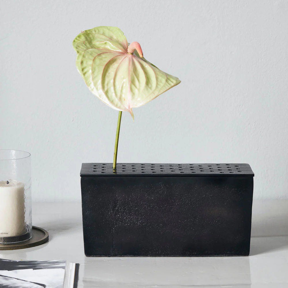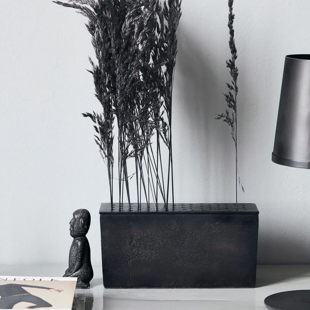 Een vierkante vaas? Met een gat voor elke steel? Maar natuurlijk! House Doctor heeft de Flow vaas ontworpen om op te vallen in je interieur. De donkere kleur van het aluminium is subtiel, maar de steelgaten en vierkante vorm tillen het ontwerp naar een hoger niveau. In plaats van bloemen als boeket te presenteren, accentueert Flow elke individuele bloem. Verwijder simpelweg het deksel om water toe te voegen, plaats de bloemen en vind een mooie plek voor haar in huis. Misschien in de vensterbank of op een bijzettafel?