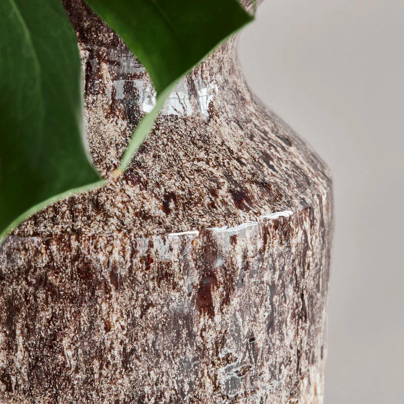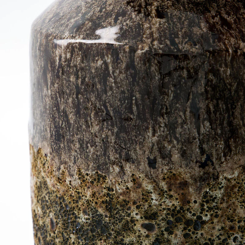 Dompel uw huis onder in rustieke elegantie met deze handgemaakte aardewerk vaas, met een uniek antiek bruin glazuur. Het is een echt statement-stuk en fungeert zowel als functioneel vat voor bloemstukken als als opvallend decoratief element.