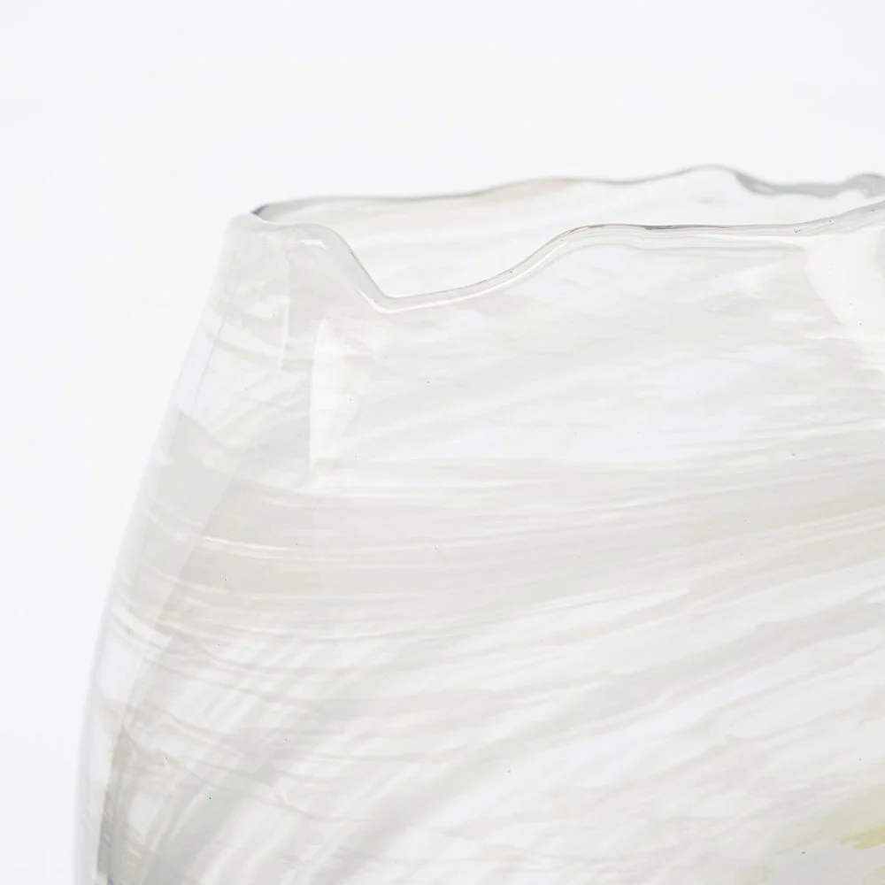De kleine glazen Jupiter vaas van House Doctor geeft je woonkamer een frisse uitstraling voor de lente. Wervelende lichtgroene spetters en een ongelijke hals geven charme aan de vaas die het prachtig zal doen op de vensterbank of als decoratief middelpunt op de eettafel. Vul hem met verse lentebloemen of maak een prachtig paasstuk met versierde twijgen om Pasen te vieren. Benadruk het gevoel van lichtheid dat de vaas creƫert, door hem te combineren met andere glazen voorwerpen zoals kaarshouders.