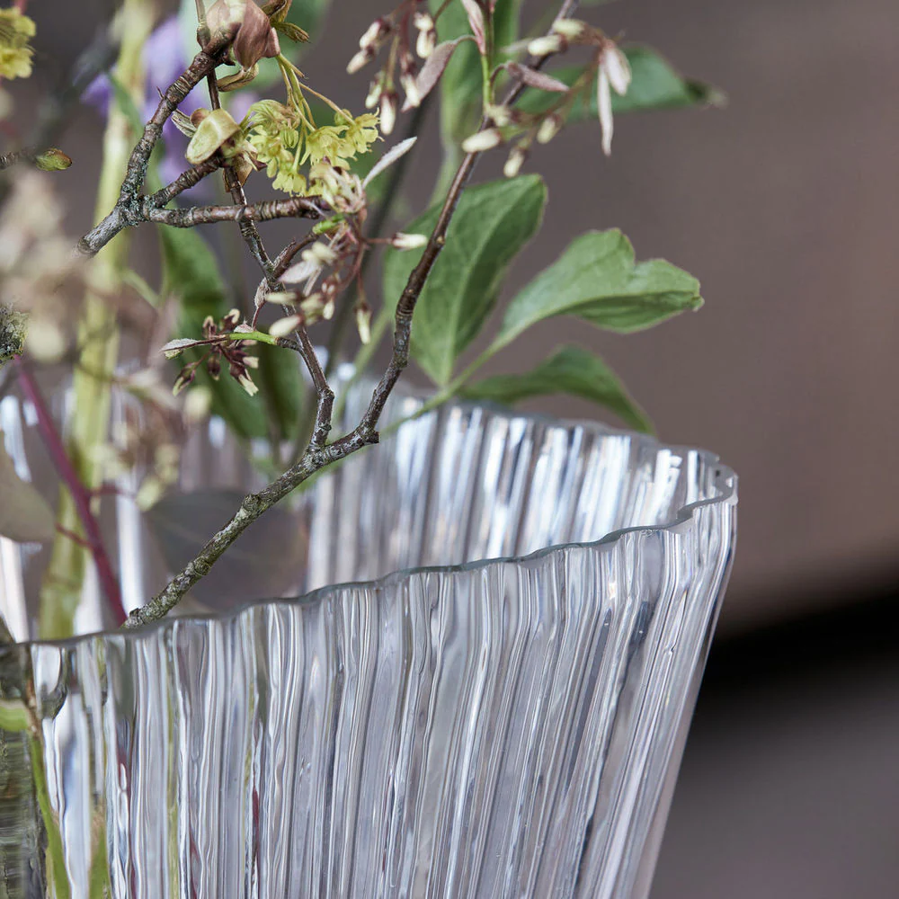 Laat je bloemen in het oog springen met deze unieke glazen vaas van House Doctor. Orri’s vorm is niet te definiëren – ze is niet helemaal vierkant en niet helemaal rond – maar daardoor valt je boeket alleen maar meer op. De golvende structuur van het transparante glas voegt een elegant en licht accent aan je interieur toe. Geef haar een mooi plekje op de salontafel of het dressoir. Orri zal snel je favoriete bloemenvaas worden.