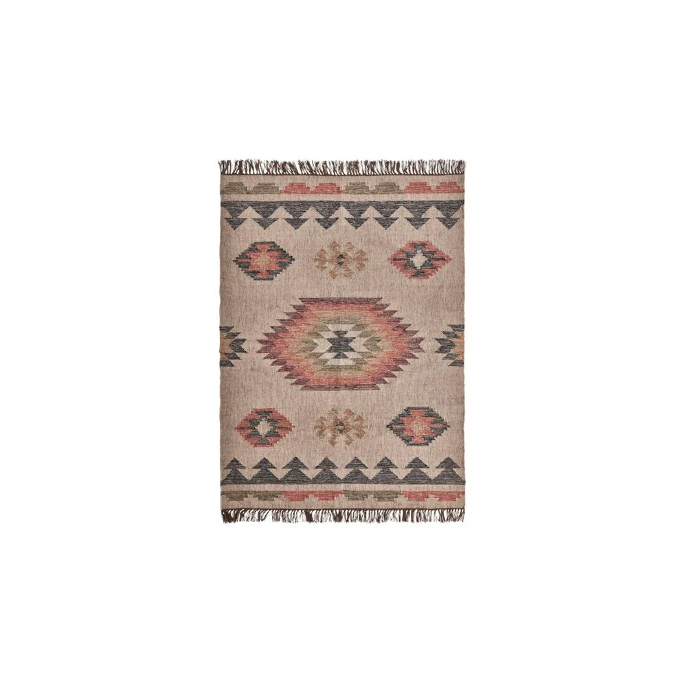 Voeg contrast toe aan je meubels met dit grote vloerkleed van House Doctor. Een groot, slijtvast tapijt van jute en wol. Met een geometrisch patroon en franjes krijgt je huis een kleurrijke en nonchalante update met een beetje boho. Definieer bepaalde gebieden in je woonkamer, zoals je zithoek of eetkamermeubels, door dit vloerkleed eronder te leggen. Of zet hem neer waar je maar wilt om zachtheid toe te voegen en je interieur op te frissen. Dit vloerkleed fleurt zowel de kamer als je dag op.