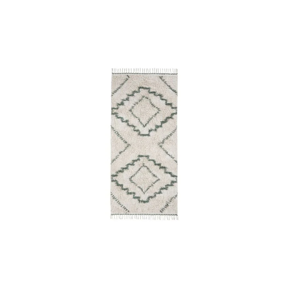 Voeg wat patroon en persoonlijkheid toe aan je interieur met dit lange shaggy vloerkleed van House Doctor. Hij is zowel zacht als stijlvol en geeft elke kamer een instant opfrisbeurt met zijn groene, geometrische patroon en nonchalante franjes. De rechthoekige vorm wordt ook wel loper genoemd en is perfect voor aan het voeteneind van je bed, voor je kast of in een lange gang. Zo bescherm je niet alleen de vloer, maar voeg je ook zachtheid en een centraal punt toe dat de kamer samenbrengt.