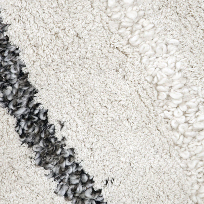 Verfraai uw woonruimte met dit handgemaakte beige vloerkleed uit de categorie Huishoudtextiel. Het heeft een uniek golvend patroon in gebroken witte en grijstinten, prachtig geaccentueerd met delicate franjes. Dit stuk is ideaal voor vloer- en wanddecoratie en introduceert een golf van verfijning in elke kamer.