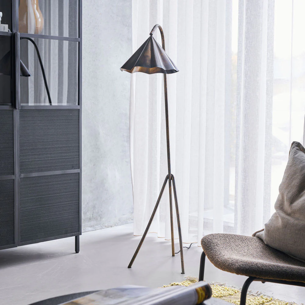 Vloerlamp en sculptuur in één. Deze lamp van House Doctor vormt een balans tussen het tijdloze minimalisme van het driepootontwerp en het vleugje feminisme van de zachte, vloeiende vorm van de lampenkap. Een prachtig voorbeeld van opzettelijke imperfectie, het oppervlak heeft een industriële afwerking. Zet het bij je bank of fauteuil waar het een opvallend interieurelement wordt.