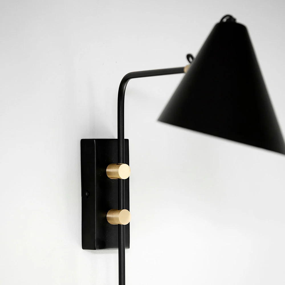 Met de decoratieve wandlamp Club van House Doctor haal je sfeerlicht in huis en een stijlvolle aankleding van je muren. De lamp heeft een industriƫle en sculpturale uitstraling, waardoor hij een prachtig designstatement is in elk huis. De combinatie van zwart ijzer en goudkleurig messing geeft het ontwerp een warme twist. Kantel het hoofd op en neer en van links naar rechts, en beweeg de arm heen en weer om het gewenste licht te krijgen.