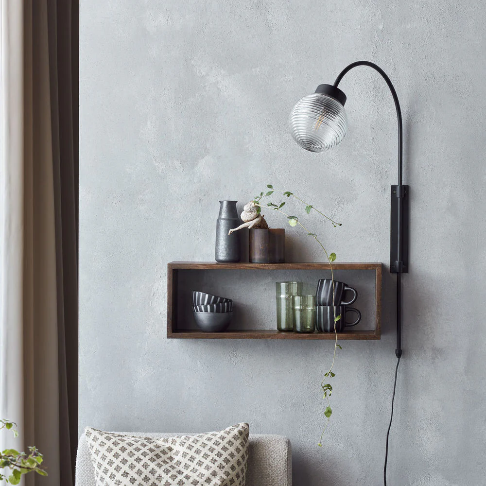De wandlamp Gaia van House Doctor brengt een casual stijl en een sculpturale touch in je interieur. De handgemaakte, geribbelde lampenkap van glas voegt een tactiele sfeer toe aan het design, terwijl de lange, ranke arm van ijzer voor balans zorgt. Door het heldere glas laat de lamp zich moeiteloos combineren met elke interieurstijl en verspreidt hij overal een zacht licht. Hang hem aan de muur bij je fauteuil voor sfeervol leeslicht en een uitnodigende sfeer. Als je interieur een beetje ingetogen elegantie kan gebruiken, is de lamp Gaia het perfecte item.