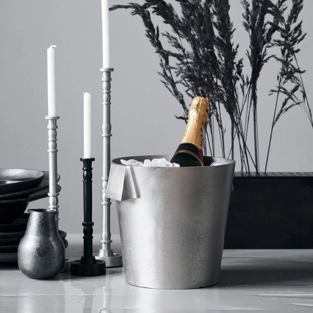 De Buck wijnkoeler van House Doctor heeft de vorm van een emmer en is een must-have voor je huisbar. Presentatie en details zijn belangrijk wanneer je gasten ontvangt, dus gebruik hem om witte wijn of champagne perfect gekoeld te houden en een persoonlijk tafelarrangement te creƫren. Om het aluminium een licht gestructureerde uitstraling te geven die niet te glad en strak is, heeft het oppervlak een geborstelde zilveren afwerking gekregen. Hierdoor ontstaat een ontwerp waarin stijl, karakter en alledaagse luxe samenkomen. Laat Buck de finishing touch zijn op je nieuwjaarsfeest, etentjes en andere gelegenheden die om een beetje alledaagse luxe vragen. Een prachtig ontwerp met de perfecte balans tussen stijl en karakter.