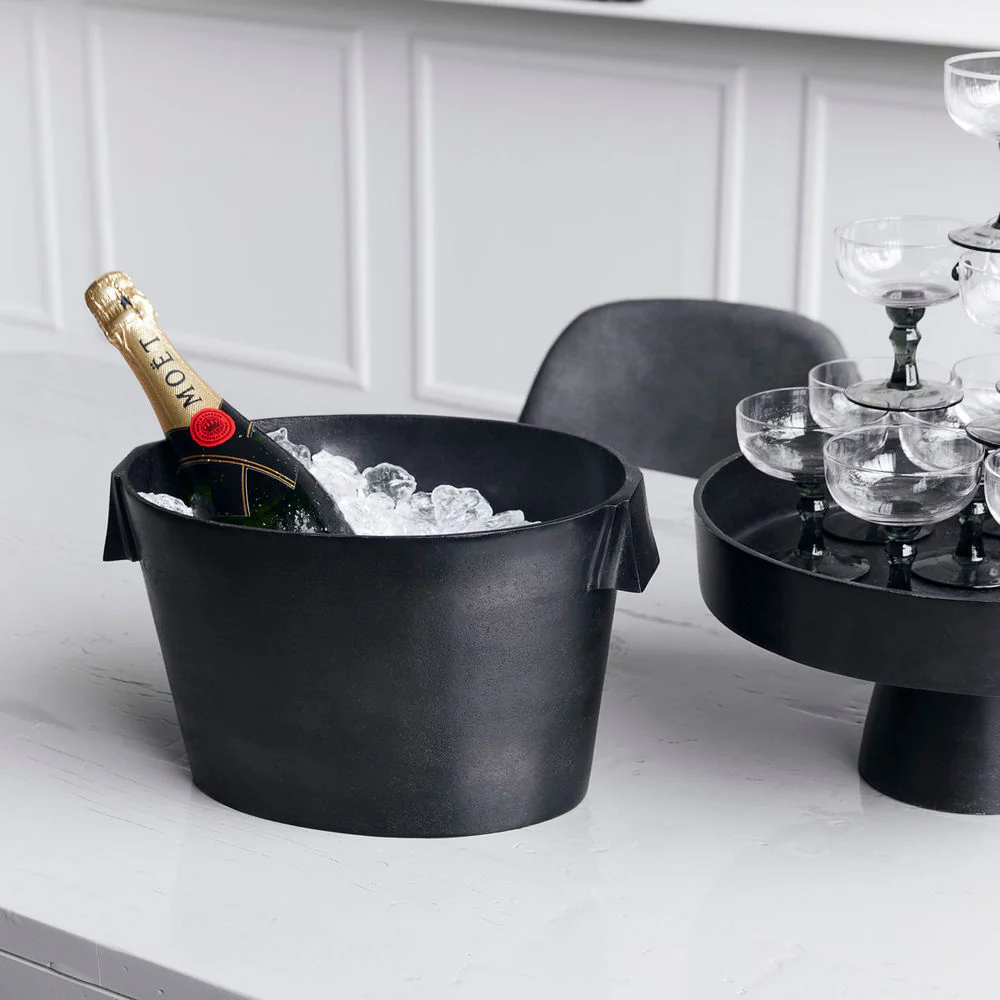 Houd wijn en champagne gekoeld tijdens diners en andere gelegenheden die om een beetje alledaagse luxe vragen. Deze wijnkoeler heet Buck en is ontworpen door House Doctor om de volgende aanwinst in je huisbar te zijn. Zet de ovale wijnkoeler op de eettafel als praktisch middelpunt, zodat flessen champagne en witte wijn perfect gekoeld zijn voor je gasten. Het aluminium heeft een donkere messing afwerking, waardoor het oppervlak er licht gestructureerd uitziet. Dit geeft het ontwerp een klassieke en tegelijkertijd eigentijdse uitstraling.