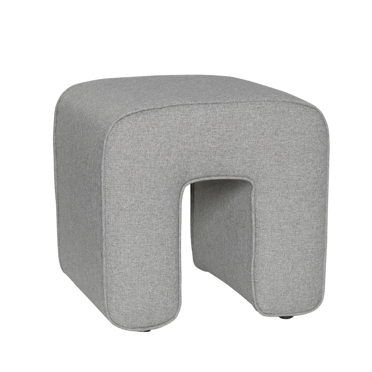 Grijze sculpturale gestoffeerde poef. 45x45xh47cm