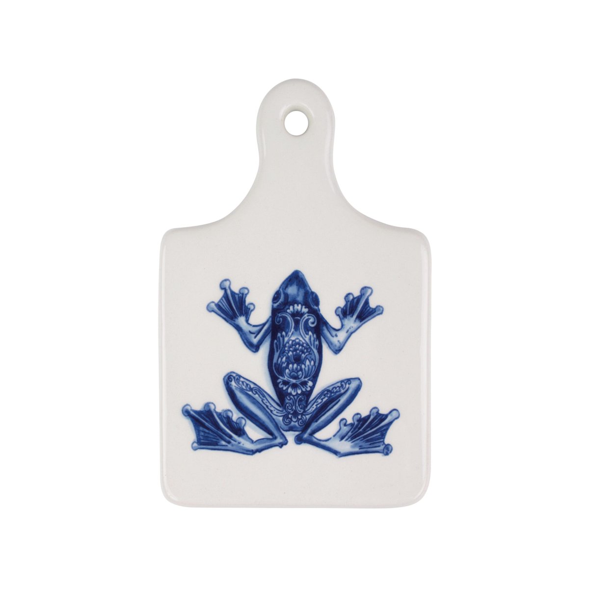 De Wunderkammer-collectie is geïnspireerd op rariteitenkabinetten die in de 17e eeuw door de rijken der aarde in hun huizen werden gepresenteerd. De afbeeldingen van de collectie zijn aangebracht met behulp van de transfertechniek. Op dit kleinere kaasplankje staat een kikker afgebeeld.