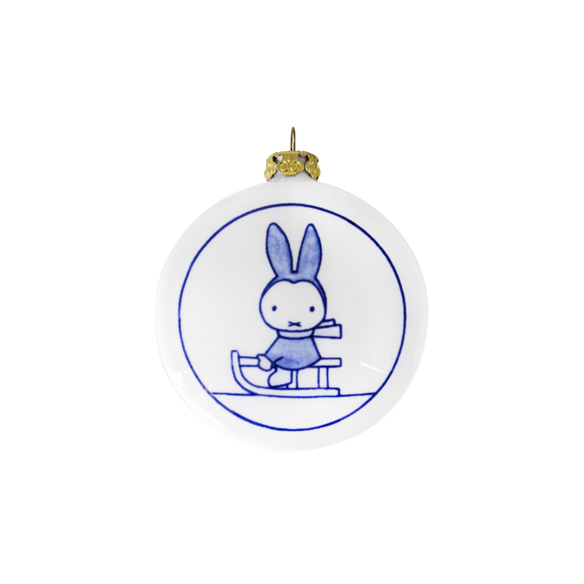 Dit prachtige, discusvormige kerstornament uit de nijntje-collectie van Royal Delft is een unieke toevoeging aan je kerstboom. Aan de voorkant van het ornament is nijntje afgebeeld, vrolijk aan het sleeën door een winters landschap. Op de achterkant staat een kerstboom, inclusief een ronde piek. De zijkanten zijn gedecoreerd met charmante bloemetjes, huisjes en sneeuwvlokjes, allemaal uitgevoerd in klassiek Delfts Blauw. Dit met de hand gemaakte ornament combineert de tijdloze traditie van Royal Delft met de speelsheid van Nijntje, waardoor het een bijzondere decoratie is voor de feestdagen.