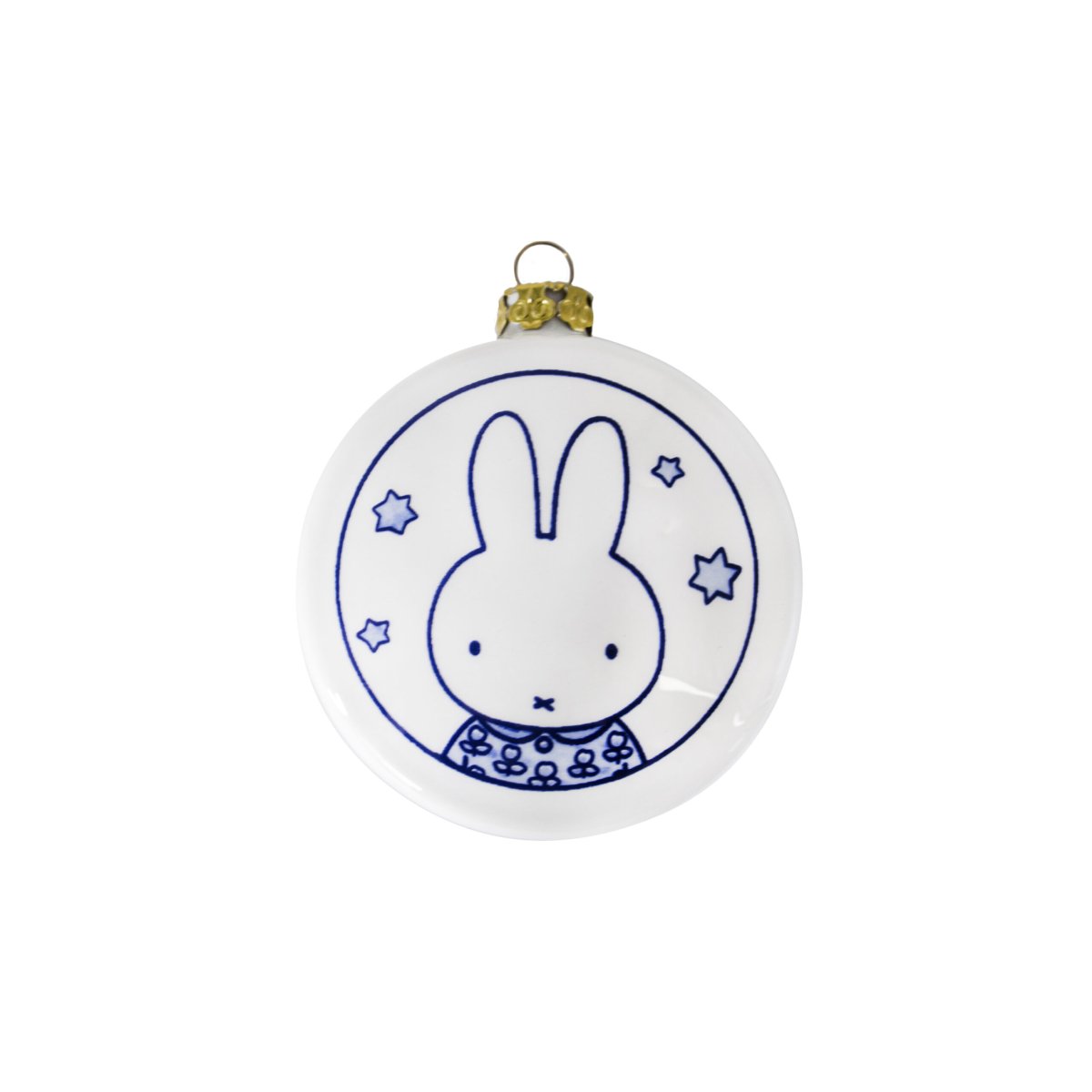 Dit prachtige, discusvormige kerstornament uit de nijntje-collectie van Royal Delft is een unieke toevoeging aan je kerstboom. Aan de voorkant van het ornament is nijntje afgebeeld, omringt door sterren. Op de achterkant staat een kerstboom, inclusief een ronde piek. De zijkanten zijn gedecoreerd met charmante bloemetjes, huisjes en sneeuwvlokjes, allemaal uitgevoerd in klassiek Delfts Blauw. Dit met de hand gemaakte ornament combineert de tijdloze traditie van Royal Delft met de speelsheid van Nijntje, waardoor het een bijzondere decoratie is voor de feestdagen.