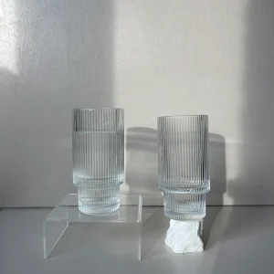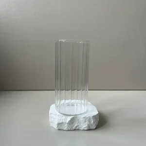 – Gemaakt van helder glas met een handgemaakte acaciahouten voet