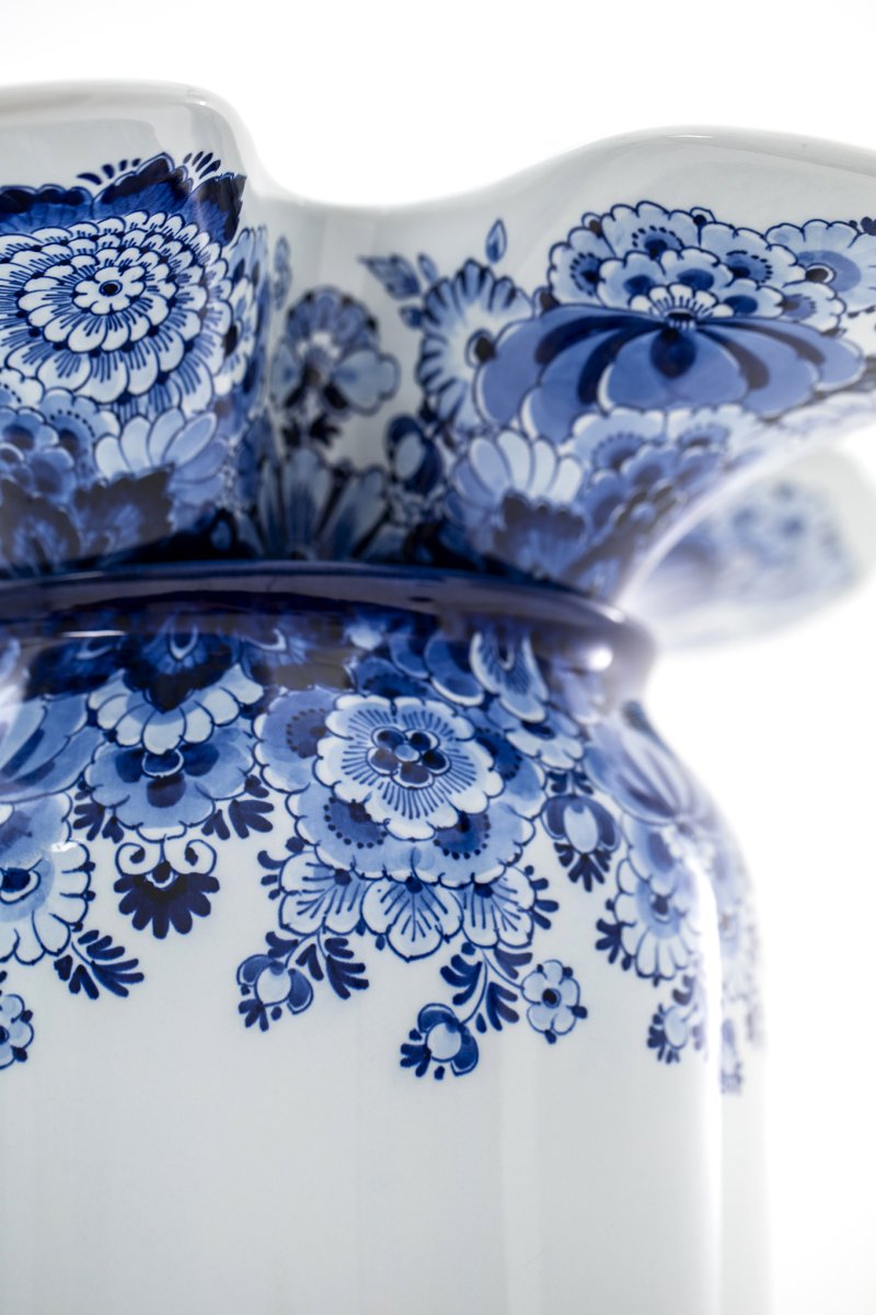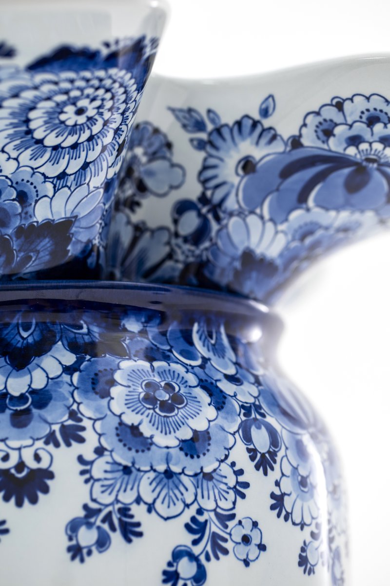 Deze vaas is dé eyecatcher van de Mazzo Blue Collection. Deze editie bestaat uit twee losse onderdelen en is volledig met de handgeschilderd door de meesterschilders van Royal Delft in het atelier in Delft. De vazen worden volledig met de handgemaakt en zijn allemaal uniek.