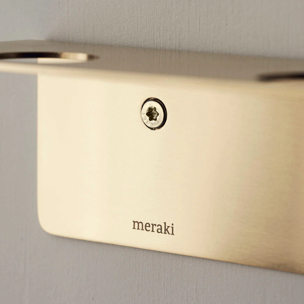 Maak ruimte vrij en geef je badkamer een frisse update met deze flessenhanger met haken. De haken bieden opbergruimte voor 3 flessen, je loofah of andere accessoires en op de plank erboven kun je meer producten kwijt. Het roestvrij staal heeft een elegante geborstelde messing afwerking die geen water doorlaat. Of je hem nu in de douche of aan de badkamermuur hangt, de flessenhanger van Meraki is een stijlvolle toevoeging aan je badkamer.