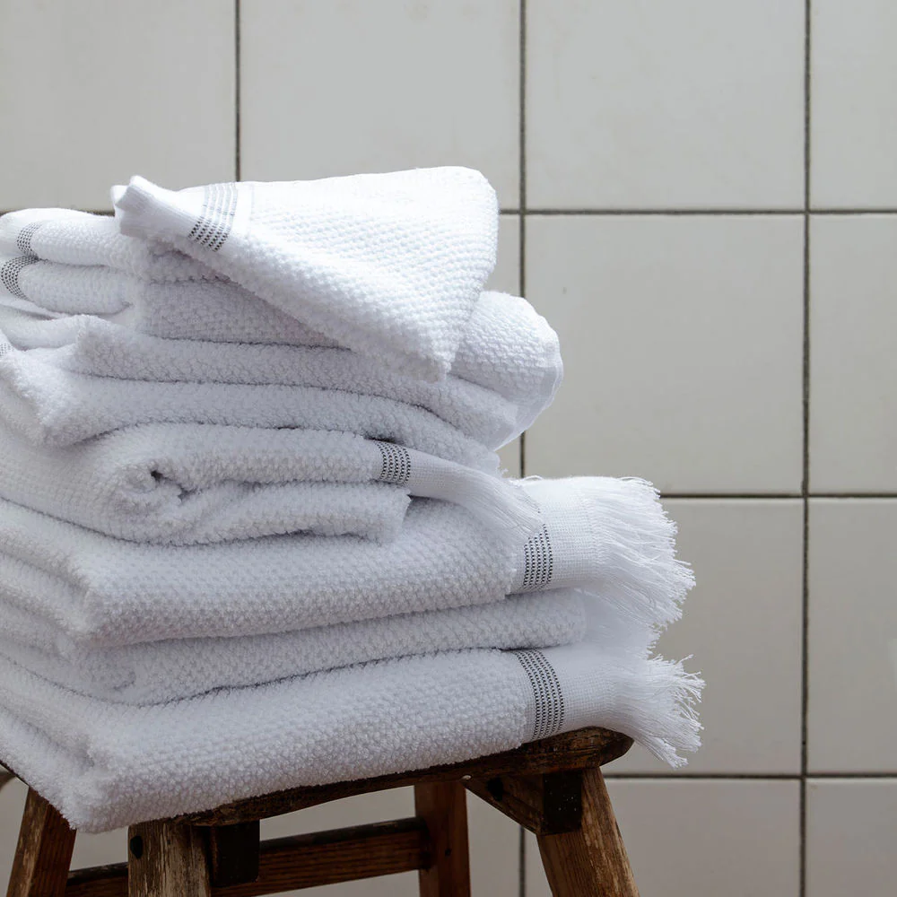 Meraki Handdoek, 70×140 cm, Wit met grijze strepen