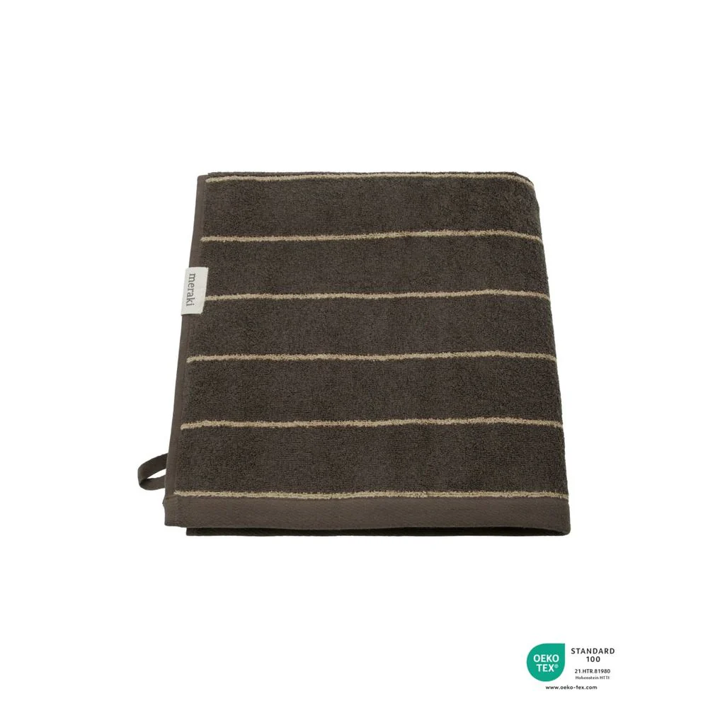 Stap uit de douche en wikkel jezelf in deze zachte badstof handdoek van Meraki. Het is gemaakt van OEKO-TEX® 100 gecertificeerd katoen met aan beide zijden badstof. Precies wat je nodig hebt als het tijd is om je af te drogen, want badstof staat bekend om zijn zachtheid, absorptievermogen en ronduit comfortabel gevoel. Door simpelweg je handdoeken te upgraden kun je een geheel nieuwe sfeer in je badkamer creëren. Met een mix van groen en zand in een yarn-dyed gestreept ontwerp, creëert de Stripe handdoek van Meraki een geaarde sfeer.
