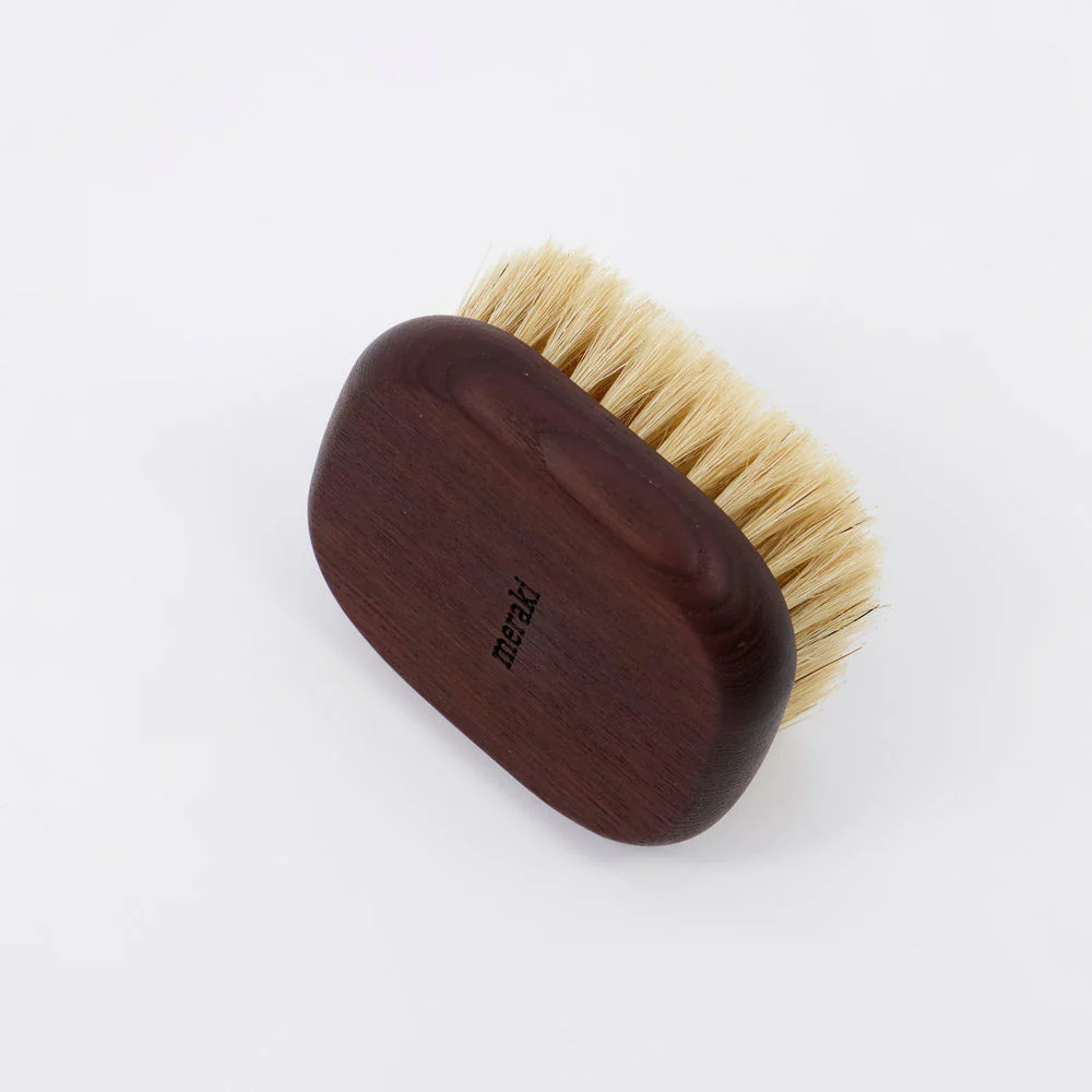 Breid je wellnessritueel uit met droog borstelen voor het douchen. Deze ionische lichaamsborstel van Meraki exfolieert je huid, stimuleert de bloedsomloop en vermindert fijne lijntjes. Wanneer je de borstel gebruikt, vormen de koperen borstelharen negatieve ionen op het oppervlak van je huid. Deze ionen staan erom bekend dat ze de lymfeklieren stimuleren, de weerstand van de huid verhogen, cellulitis verminderen en de elasticiteit van de huid verbeteren. Zowel je bloedcirculatie als je stofwisseling verbeteren en je zult je energieker voelen. Gebruik op de droge huid 2 tot 5 minuten voor het douchen. Het geheim zit hem in het maken van lange, zachte strijkbewegingen, altijd in de richting van het hart. Begin bij je voeten en beweeg langs elk been omhoog naar je lies. Ga verder van je handen naar je oksels. Borstel vanaf je buik naar boven richting je hart of borstel in cirkelvormige bewegingen met de klok mee. Eindig met het borstelen van je onderrug richting het hart in cirkelvormige bewegingen. Verwijder na gebruik de huiddeeltjes door met je duim door de borstelharen te gaan en er een kam doorheen te halen of door met de borstel op een schoon, egaal oppervlak te tikken. Het essenhout heeft een warmtebehandeling gekregen waardoor het zeer duurzaam is en bestand tegen vocht. Dit geeft het ook de mooie, donkere kleur.