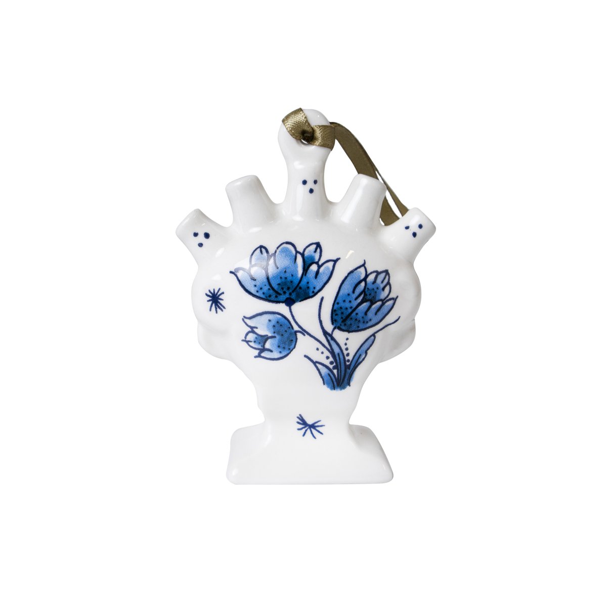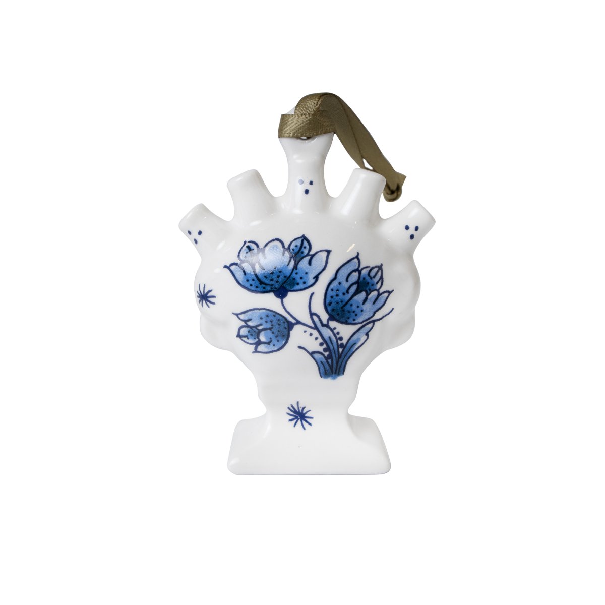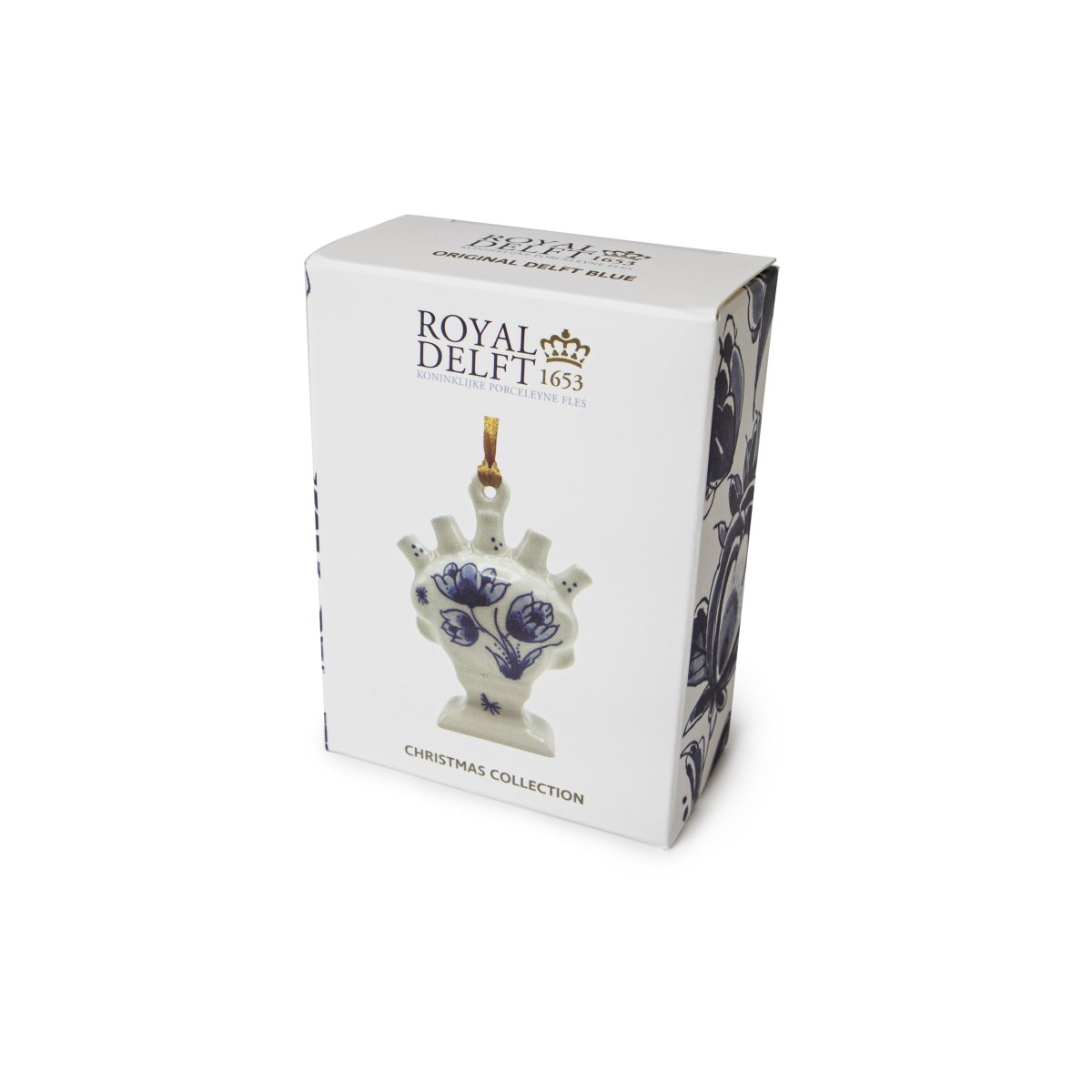 Deze miniatuur is gebaseerd op de tulpenvaas van Royal Delft. Door de eeuwen heen zijn er veel verschillende vormen van deze charmante vaas geproduceerd, met een variërend aantal tuiten. Deze miniatuur voegt de klassieke uitstraling van de Delfts Blauw-traditie op een subtiele manier toe aan je interieur of kerstboom en past perfect bij de andere 3 miniaturen uit deze collectie.