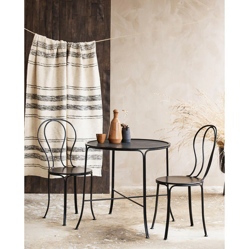 ARAS tuintafel in zwart geverfd ijzer. Een klassieke ronde tuintafel die door zijn eenvoudige ontwerp een tijdloze, elegante uitstraling krijgt. ARAS tuintafel heeft een licht frame dat gecombineerd kan worden met onze OLIVO tuinstoel om de look compleet te maken. Met de klassieke groene kleur belichaamt ARAS een stijlvolle en traditionele tuintafel. Deze tuintafel is ideaal in combinatie met vier bijpassende stoelen.