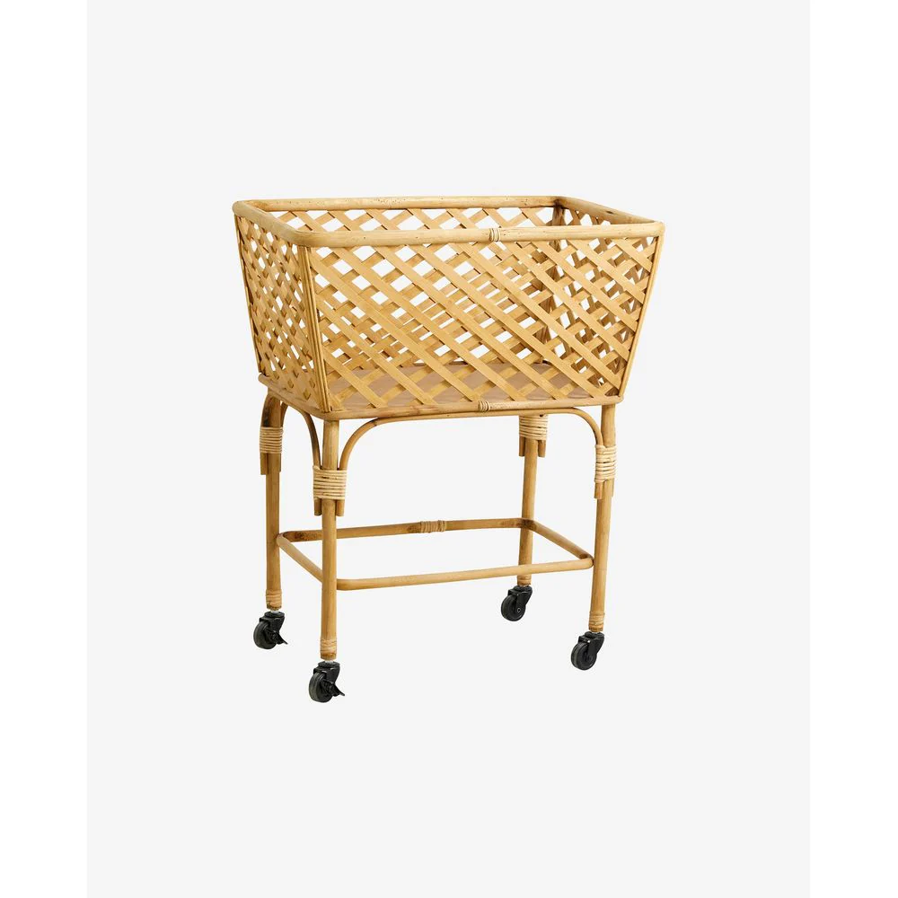 Een handige mand op wielen gemaakt van bamboe. Het materiaal is natuurlijk en kan variĆ«ren in grootte, kleur en uiterlijk – dit maakt deel uit van het ontwerp. Gebruik hem voor de was, kinderspeelgoed of andere van je favoriete opbergspullen. Is ook verkrijgbaar in een andere vorm. Maximaal gewicht: 16 kg.