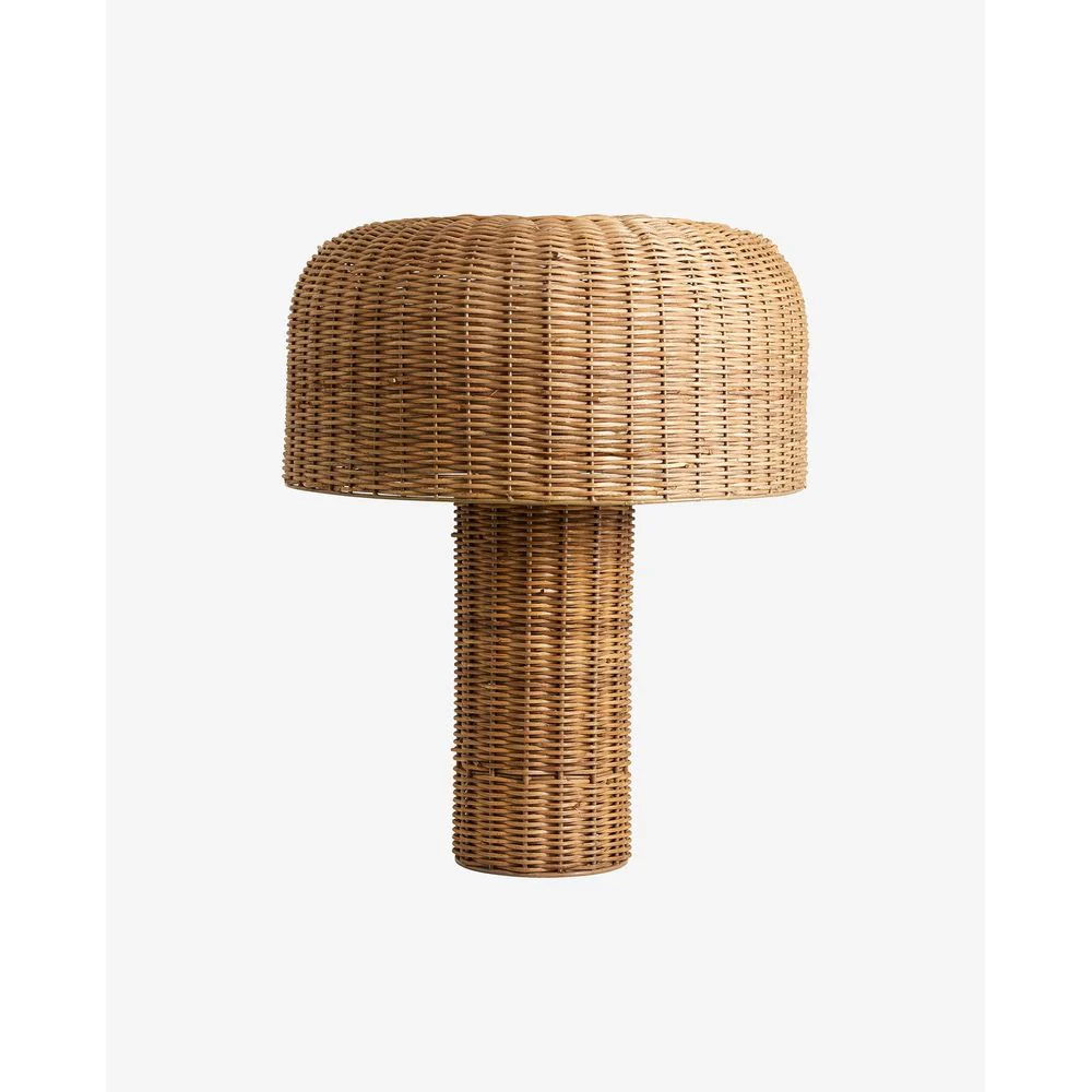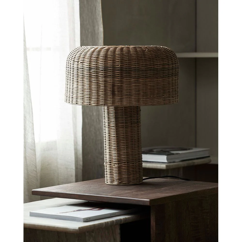 ATUM tafellamp is gemaakt van riet, een natuurlijk materiaal dat varieert in grootte, kleur en uiterlijk van item tot item. De lamp heeft een aan/uit-schakelaar en een 2 m lang zwart plastic snoer.