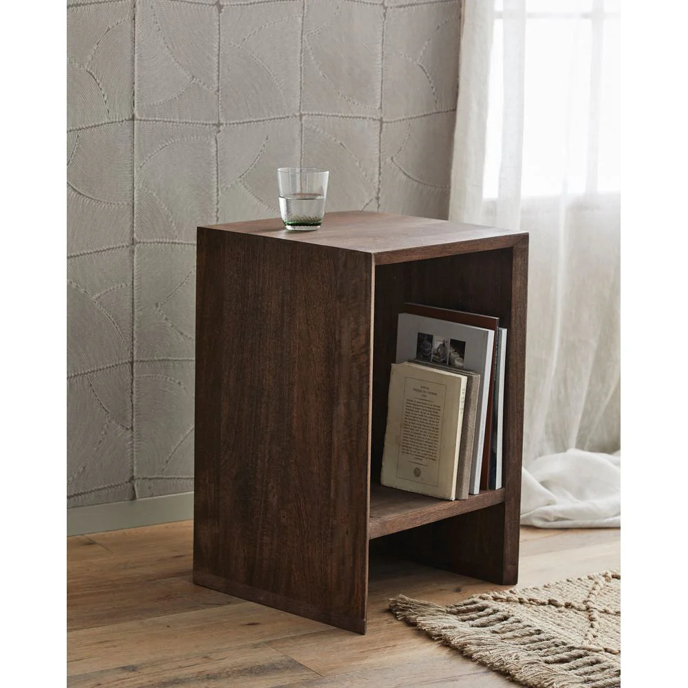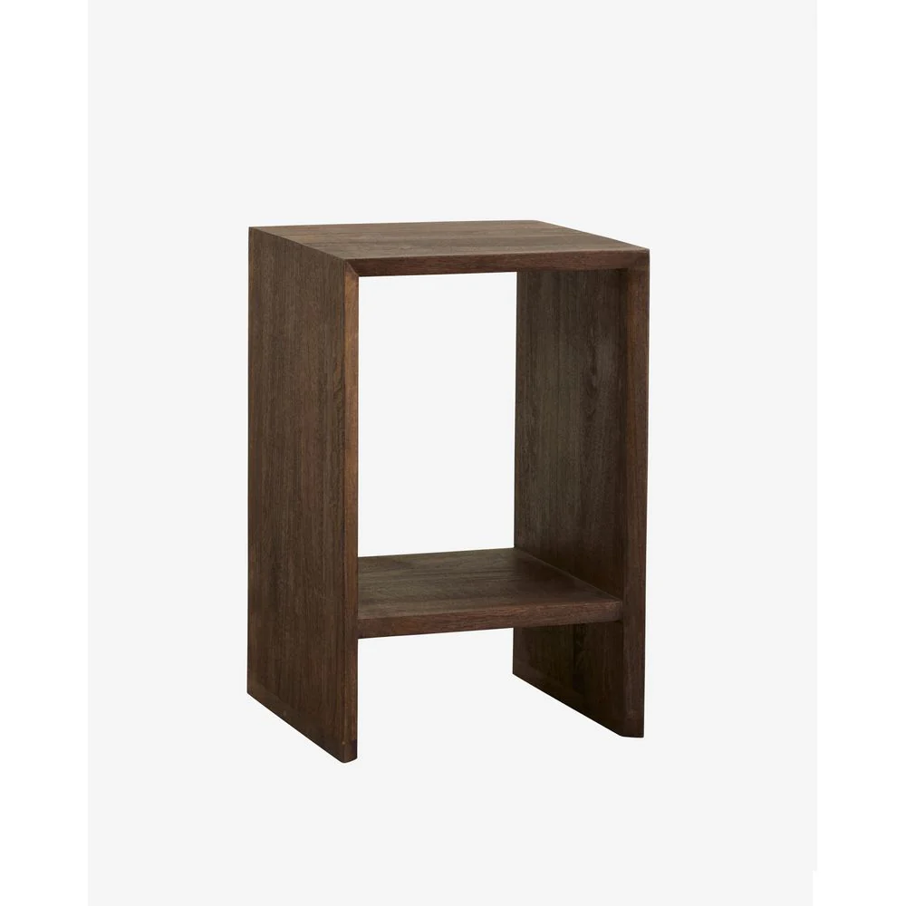 NAPO nachtkastje is gemaakt van mangohout met een donkerbruine beitskleur. NAPO kan gebruikt worden in je slaapkamersetting of als bijzettafel met opbergruimte. De binnenhoogte is 42 cm van binnenkant bovenkant tot plank.