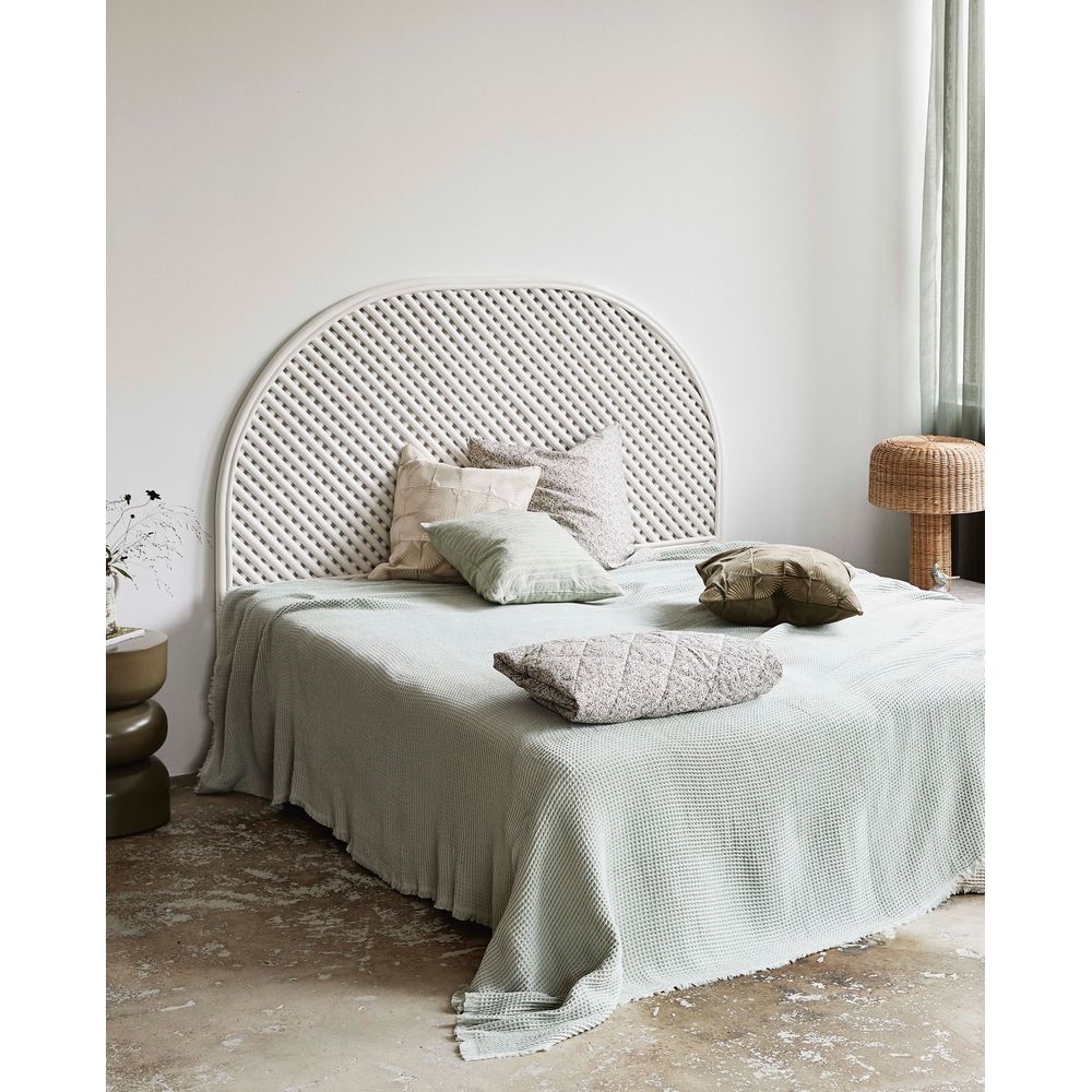 Het PHAI-hoofdbord is handgemaakt van wit afgewerkt rotan. Met zijn ronde vorm en elegante patronen valt PHAI op als een prachtig, decoratief stuk. Dit stijlvolle hoofdeinde kan in elke slaapkamer worden gebruikt om een gezellige, warme sfeer te creƫren. PHAI hoeft niet aan de muur bevestigd te worden, je kunt er gewoon voor kiezen om hem op de grond achter je bed te plaatsen.