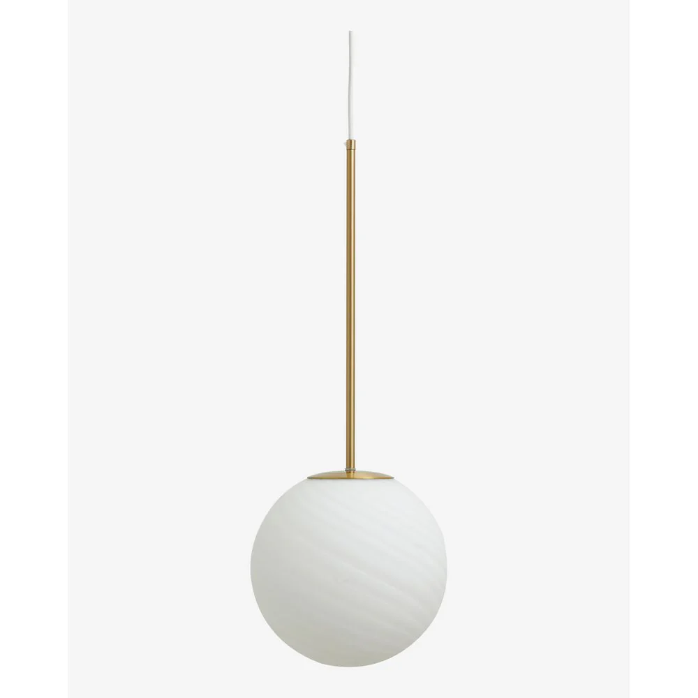 SETH hanglamp heeft een mooi streeppatroon in het glas en een mat oppervlak. De lamp heeft gouden metalen details.
