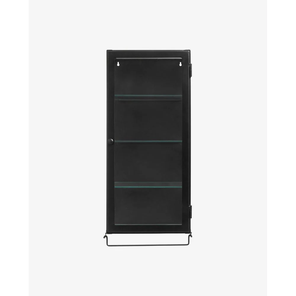 SIRI wandkast heeft 3 verwijderbare glazen planken van 5 mm met een maximaal gewicht van 1,5 kg. De kast heeft glazen zijkanten van 3 mm en een glazen deur met magneet.