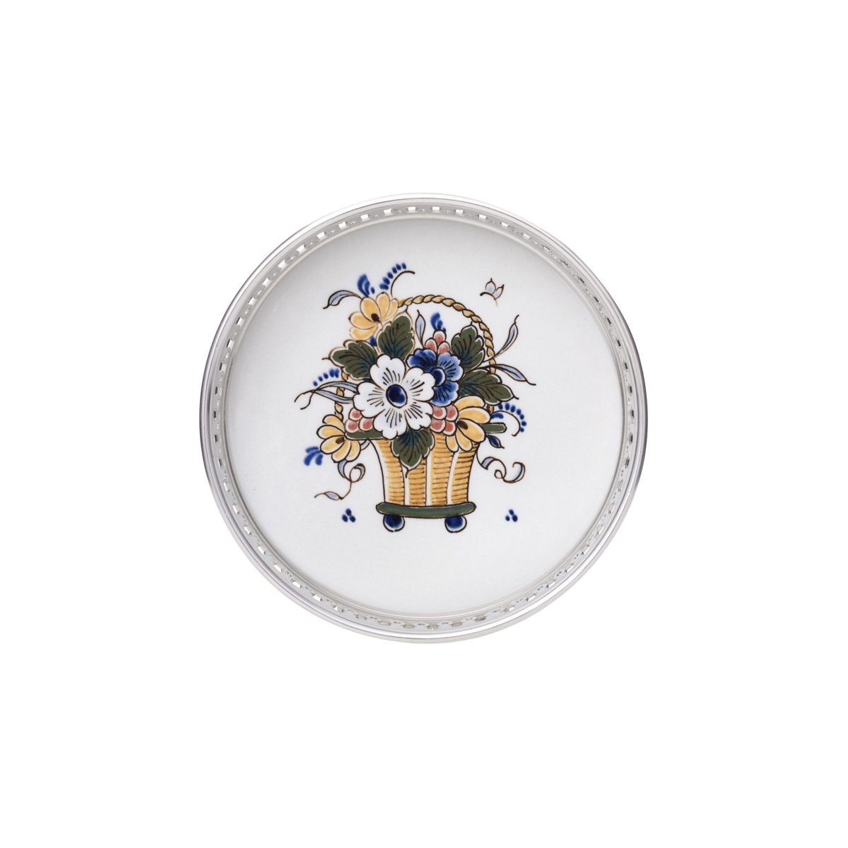 Naast het wereldberoemde Delfts Blauw creëren de meesterschilders van Royal Delft ook de veelkleurige polychrome collectie. Deze decoratiestijl is geïnspireerd op de kleuren die in het Middellandse-Zeegebied worden gebruikt en het zijn deze kleuren die het aardewerk zijn typische karakter geven. Deze stijlvolle onderzetter is versierd met een kleurrijke bos bloemen.