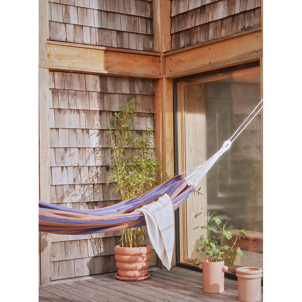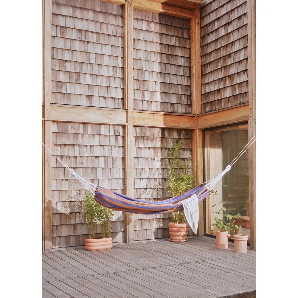 Een hangmat is absoluut perfect voor in de tuin of op het terras en brengt bij de meeste mensen jeugdherinneringen naar boven. De Kyoto Hangmat is gemaakt van gerecycled polyester, een duurzaam en duurzaam materiaal.