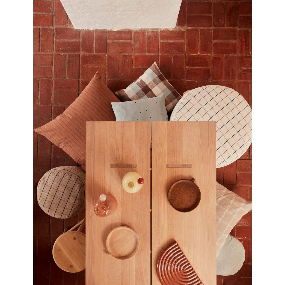 Het Kyoto Vloerkussen heeft een minimalistisch en nostalgisch design met een rasterpatroon. De Kyoto Kussenserie bestaat uit kussens in verschillende kleuren en vormen. Creëer een gezellig hoekje met vloerkussens en zachte dekens in de woonkamer of in de kinderkamer. Mix en match de verschillende vormen en maten voor een leuke en speelse uitstraling.