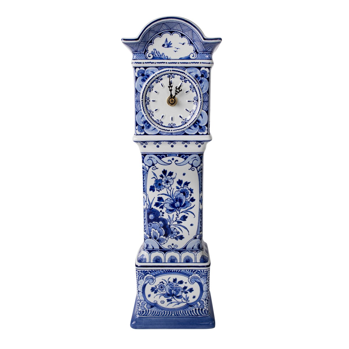 De pendule, ook wel bekend als het staand horloge, is een iconisch meesterwerk van Royal Delft. Dit tijdloze pronkstuk is volledig met de hand geschilderd door onze meesterschilders.