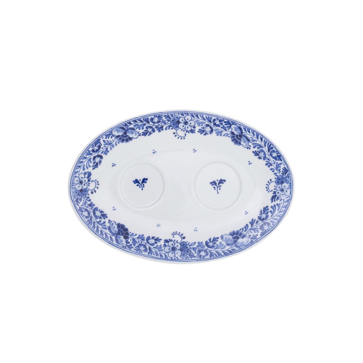 Deze handgeschilderde Delfts Blauwe schotel is onderdeel van een handgeschilderd peper & zoutstel in Delfts Blauwe.