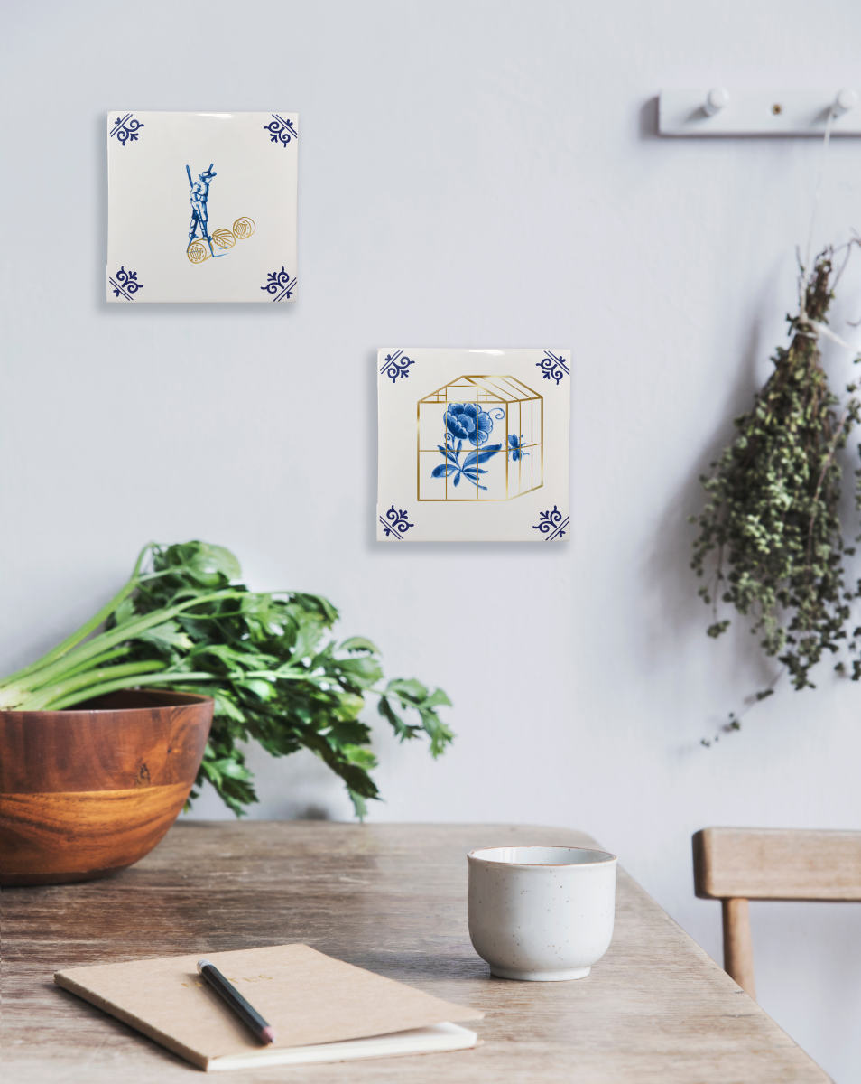 Goldie Tiles, onze Delfts Blauwe tegel met een gouden knipoog.