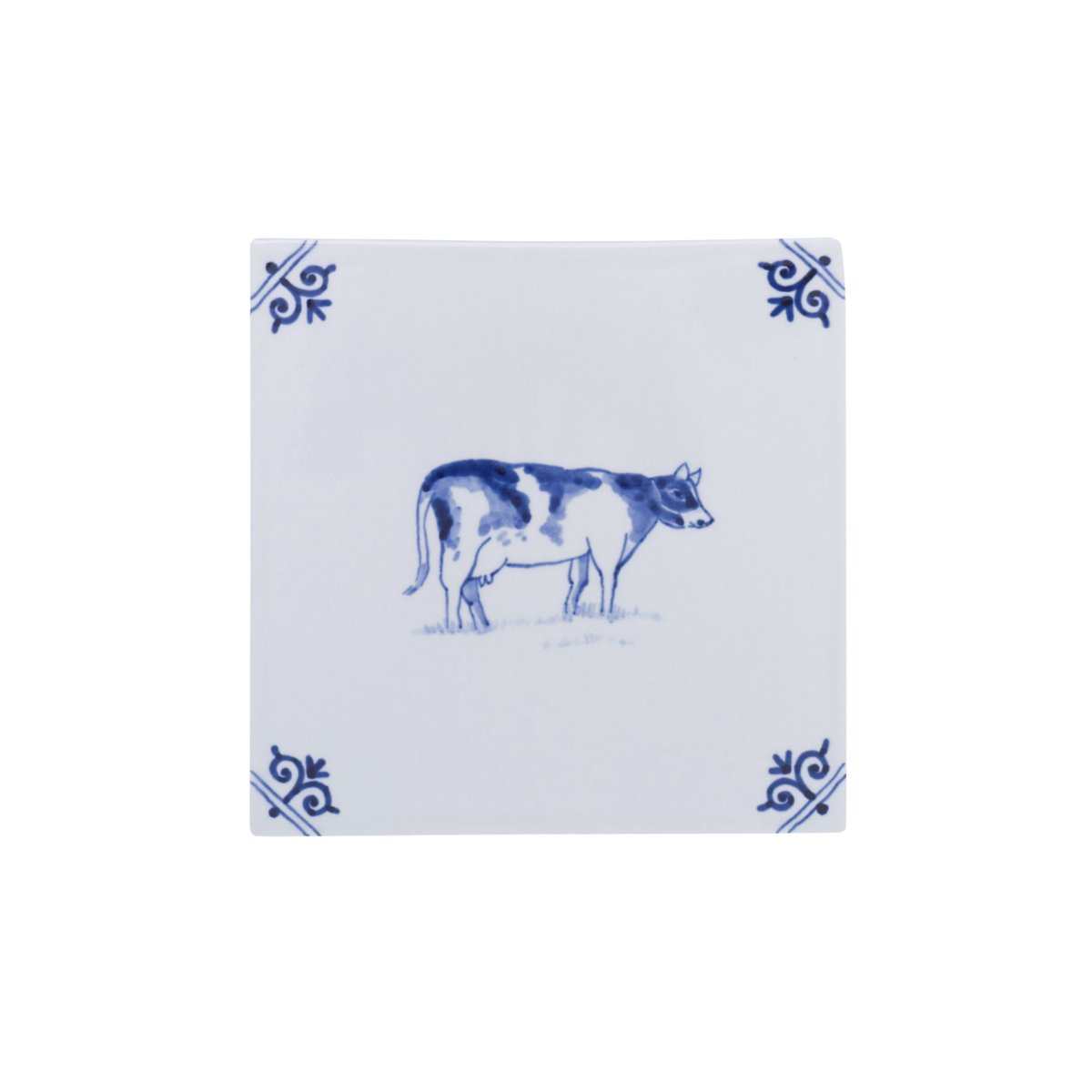 Versier uw huis met handgeschilderde Delfts Blauwe tegels van Royal Delft. Royal Delft maakt sinds 1653 hoogwaardig Delfts Blauw aardewerk. Deze tegel is met de hand geschilderd door een van onze meesterschilders en versierd met een typisch Hollandse koe.
