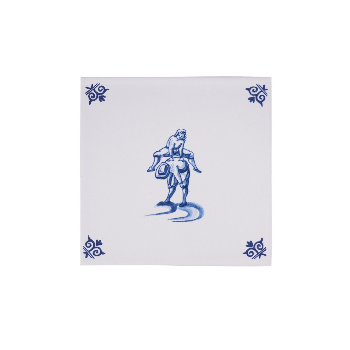 Versier uw huis met de nostalgische Delfts Blauwe tegels van Royal Delft. Op deze tegel zien we kinderen bokspringen. De decoratie is getekend door een van onze meesterschilders en wordt aangebracht met behulp van de transfertechniek.