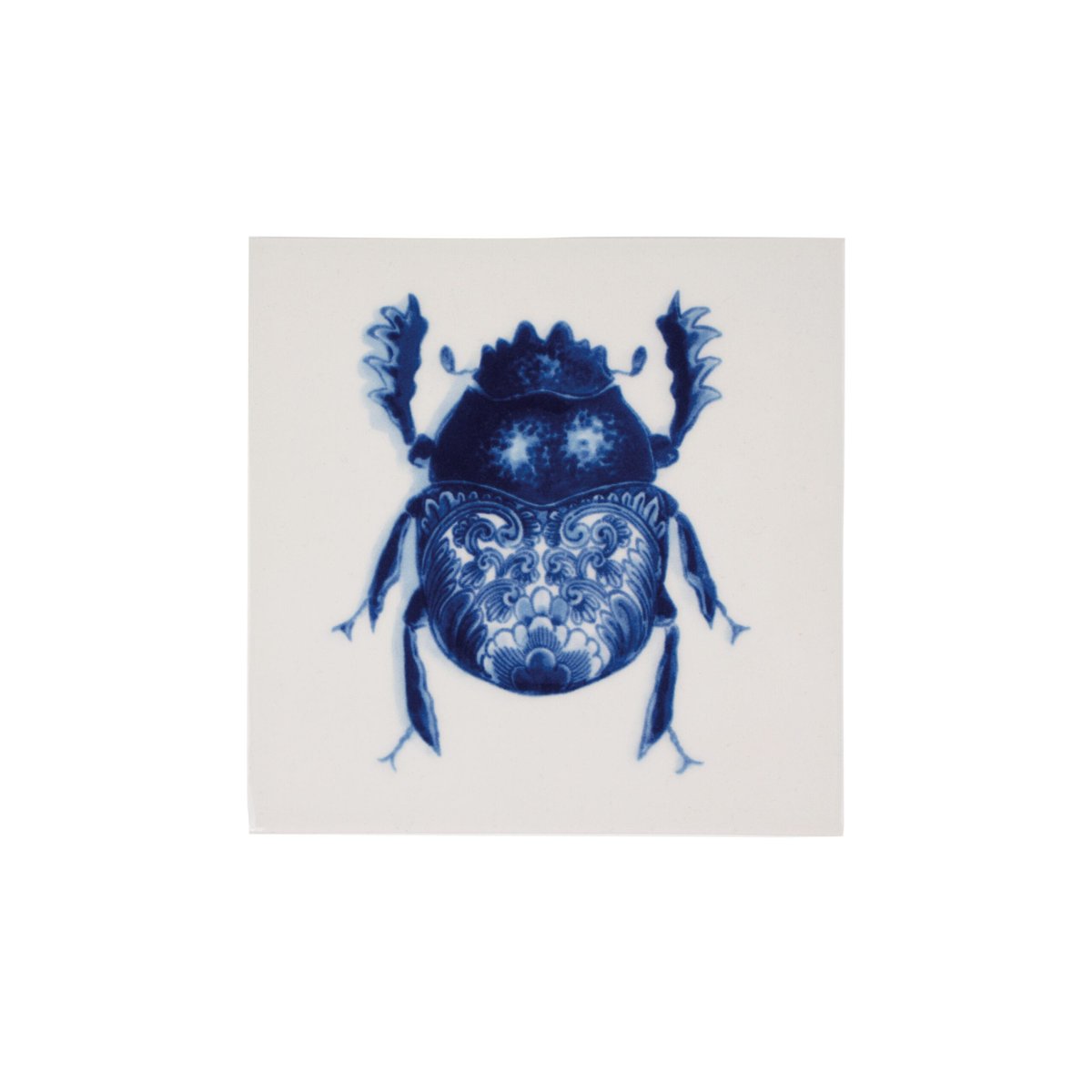 De Wunderkammer-collectie is geïnspireerd op rariteitenkabinetten die in de 17e eeuw door de rijken der aarde in hun huizen werden gepresenteerd. De afbeeldingen van de collectie zijn aangebracht met behulp van de transfertechniek. Deze grote kever heeft een mooie Delfts Blauwe decoratie op zijn rug.