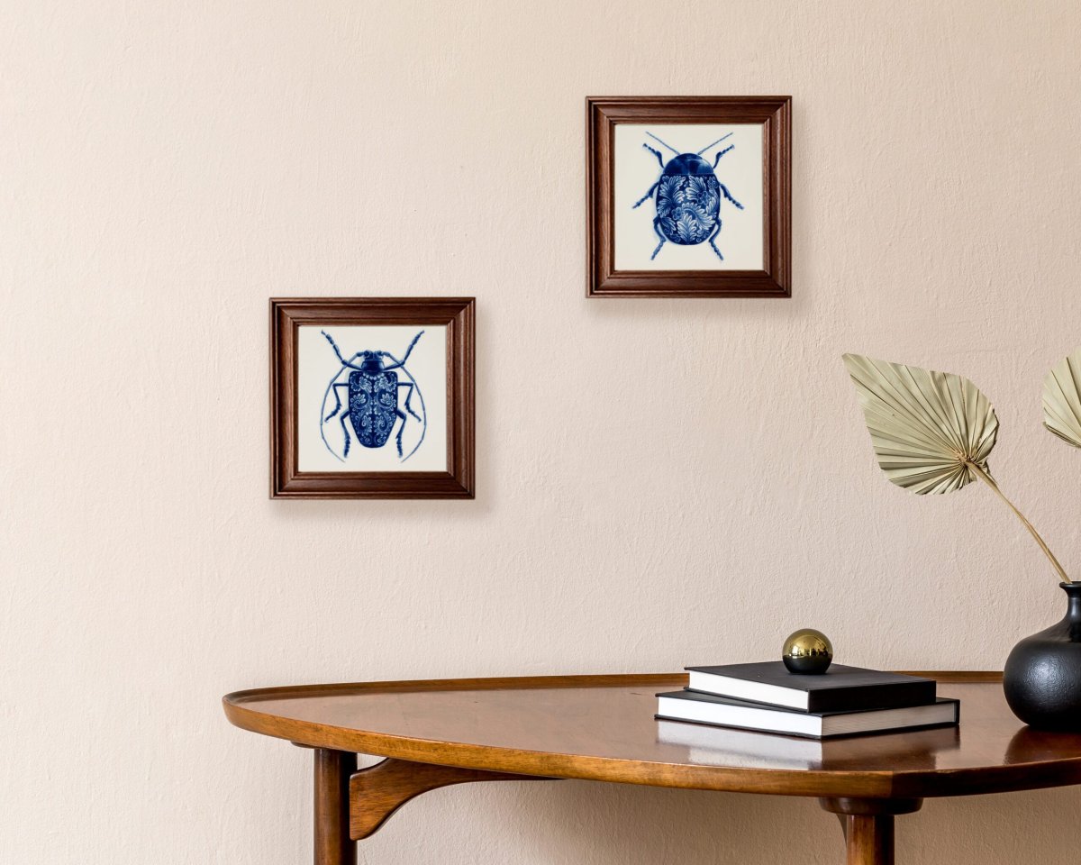 De Wunderkammer-collectie is geïnspireerd op rariteitenkabinetten die in de 17e eeuw door de rijken der aarde in hun huizen werden gepresenteerd. De afbeeldingen van de collectie zijn aangebracht met behulp van de transfertechniek. De lange vorm van deze kever geeft hem een elegante uitstraling.