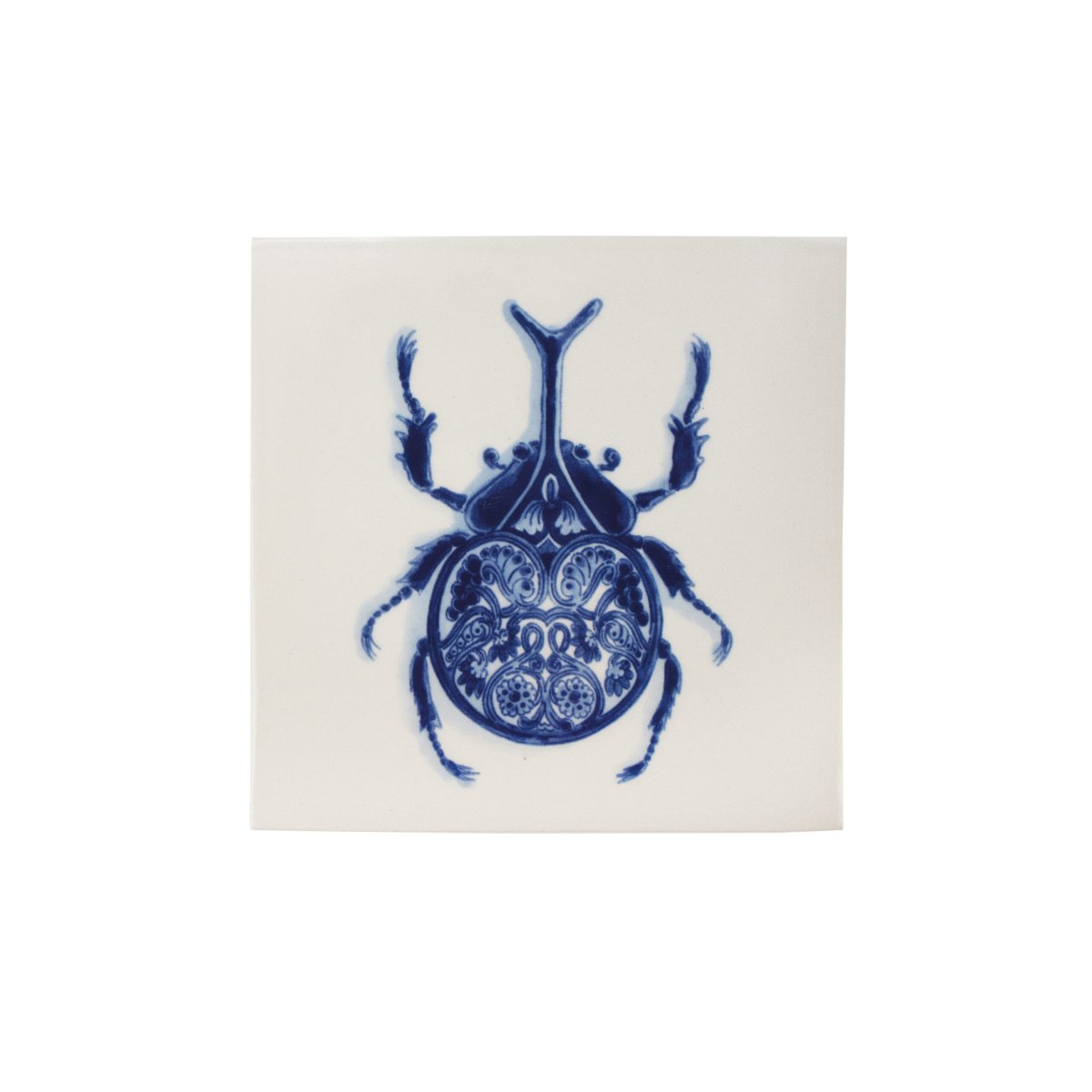 De Wunderkammer-collectie is geïnspireerd op rariteitenkabinetten die in de 17e eeuw door de rijken der aarde in hun huizen werden gepresenteerd. De afbeeldingen van de collectie zijn aangebracht met behulp van de transfertechniek. De kever op deze tegel heeft een mooie Delfts Blauwe decoratie op zijn schild.