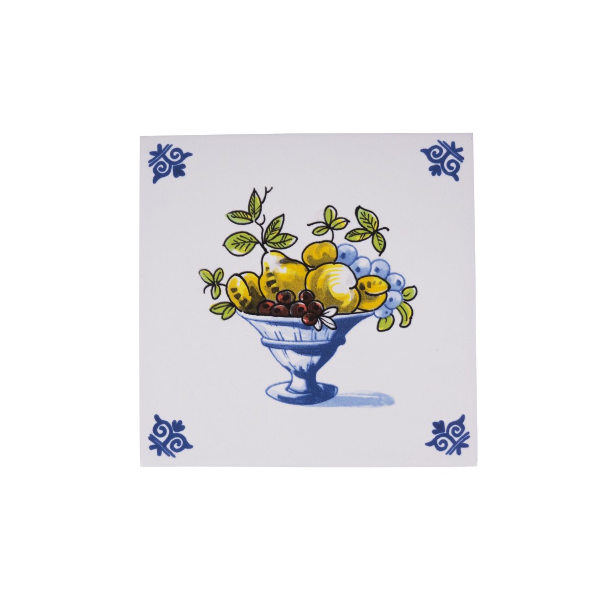 Versier uw huis met deze polychrome tegel. De kleuren in deze tegel zijn geïnspireerd op de kleuren van het Middellandse-Zeegebied. Een schat aan verschillende vruchten maken deze mand een lust voor het oog.