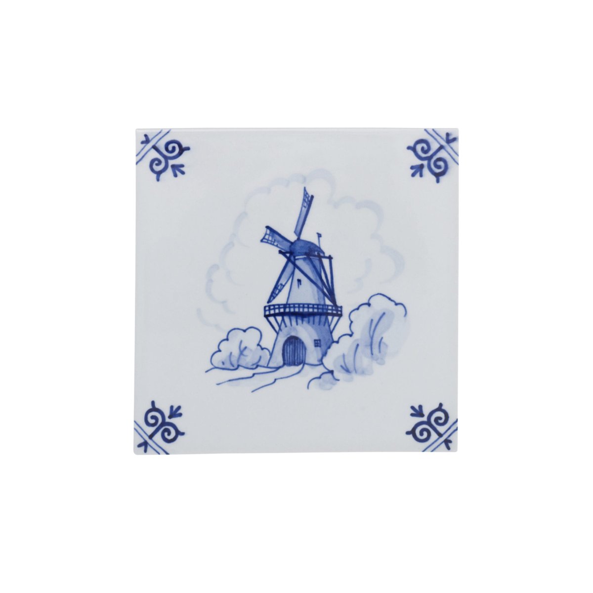 Versier uw huis met deze Delfts Blauwe tegel. Doordat de tegel met de hand geschilderd is, ziet u verschillende tinten Delfts Blauw terug in de decoratie. Een typisch Nederlandse molen is het middelpunt van deze tegel.