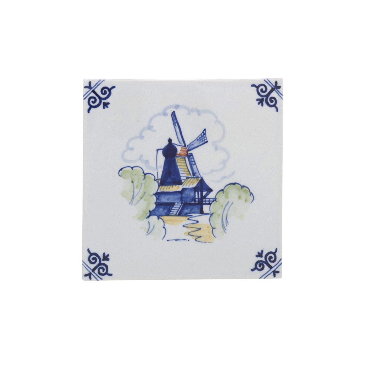 Versier uw huis met deze polychrome tegel. Doordat de tegel met de hand geschilderd is, is geen enkel exemplaar hetzelfde. Op deze tegel staat een typisch Nederlandse molen onder Hollandse wolkenluchten.
