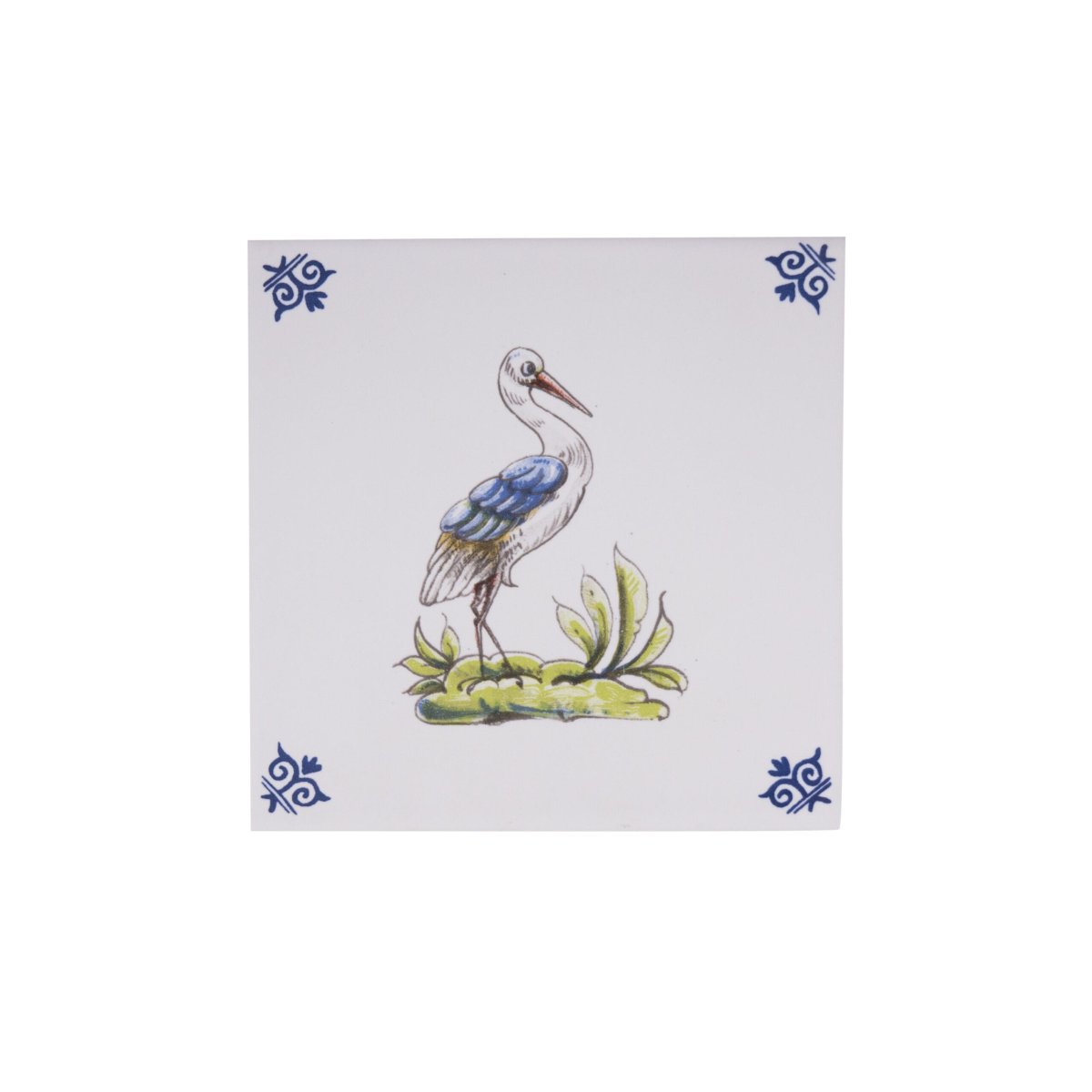 Versier uw huis met deze polychrome tegel. De kleuren in deze tegel zijn geïnspireerd op de kleuren van het Middellandse-Zeegebied. Op deze tegel dwaalt een ooievaar door de velden.
