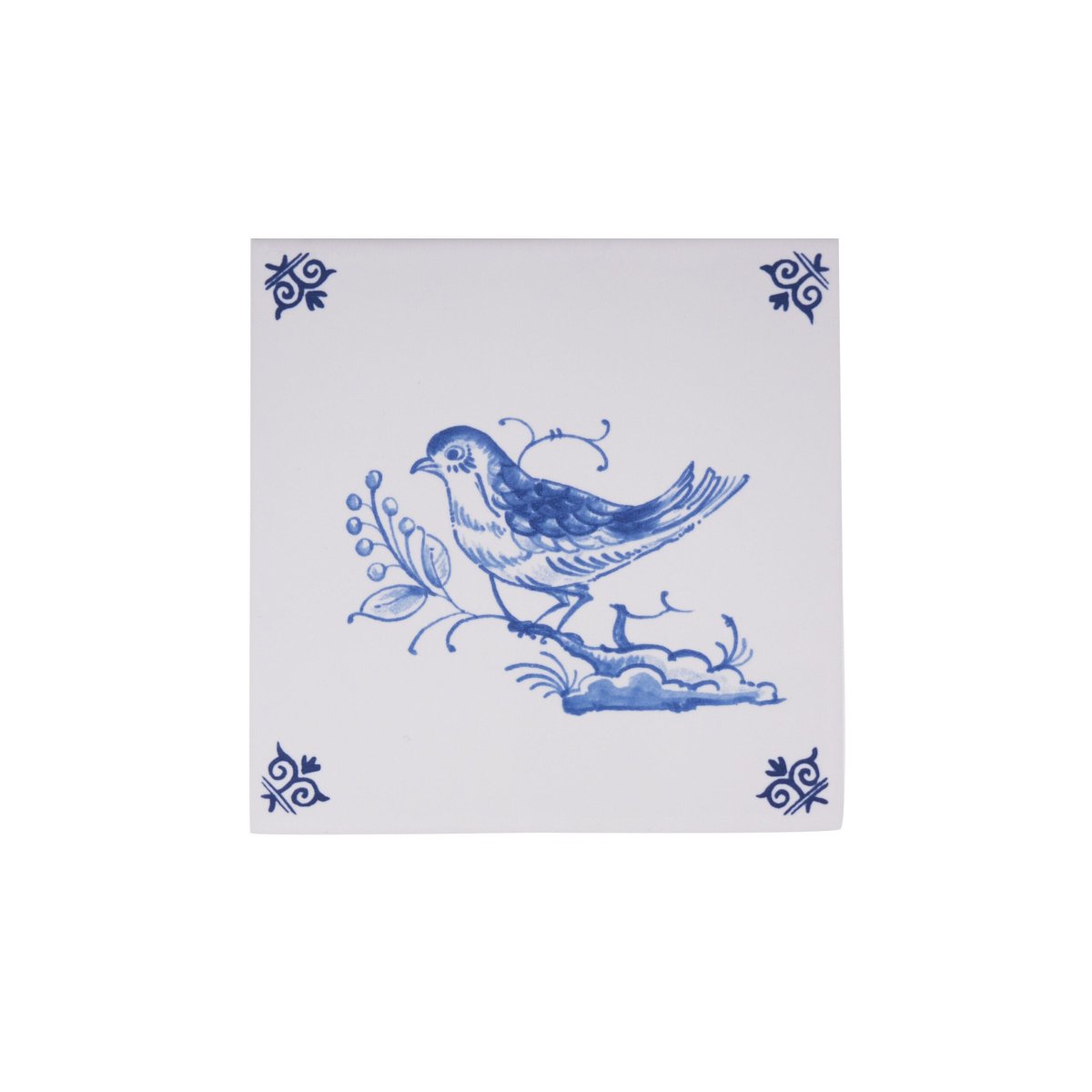 Versier uw huis met deze prachtige Delfts blauwe tegel van Royal Delft. De decoratie op de tegel is getekend door een van onze meesterschilders. De decoratie is aangebracht met de transfertechniek. Een vogel zit op een twijgje te staren naar de horizon.