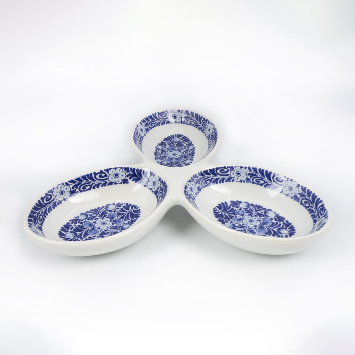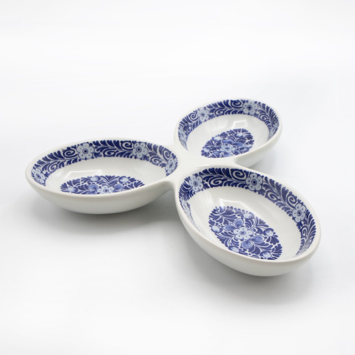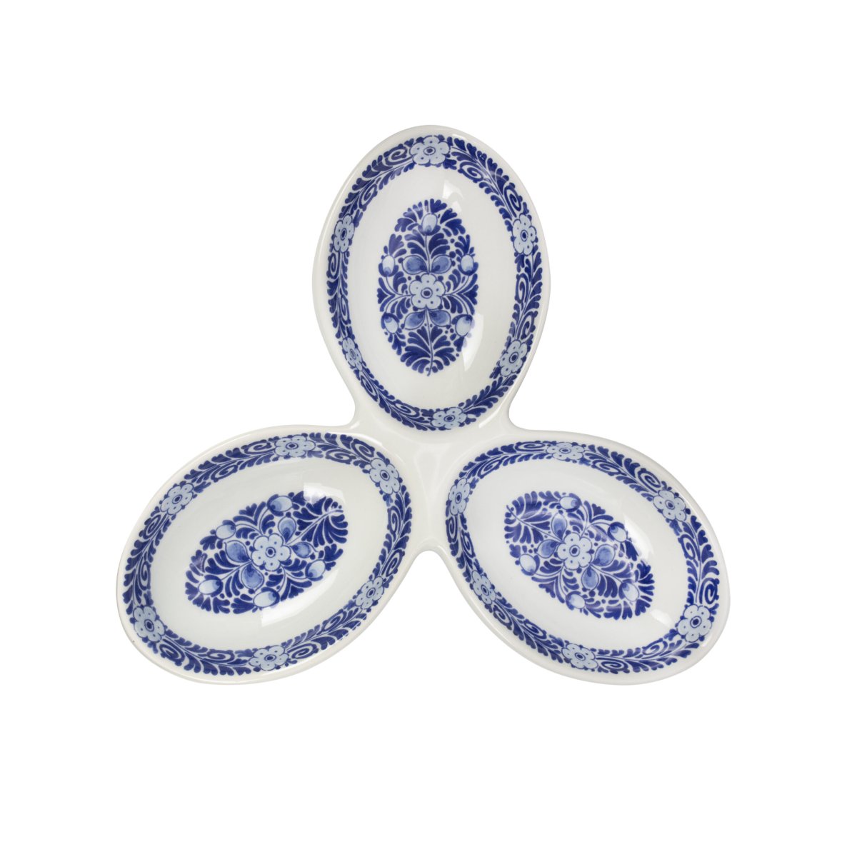 Delfts Blauwe schaal met drie aparte vakjes uit de Blueware collectie van Royal Delft is perfect voor het serveren van hapjes, snacks of nootjes.