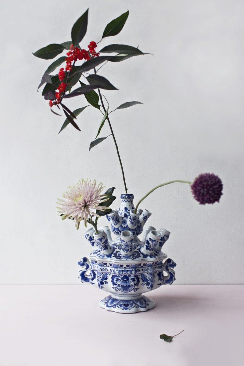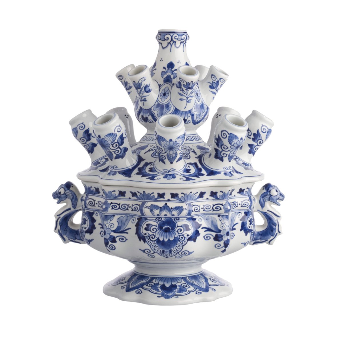 Het icoon van Delfts Blauw aardewerk is nog steeds de vaas met tuiten. De vaas was bedoeld om gevuld te worden met verschillende soorten bloemen, en niet alleen tulpen, zoals de populaire naam tulpenvaas doet vermoeden. Sinds 1685 wordt dit komvormige model met een los deksel in Delft geproduceerd.